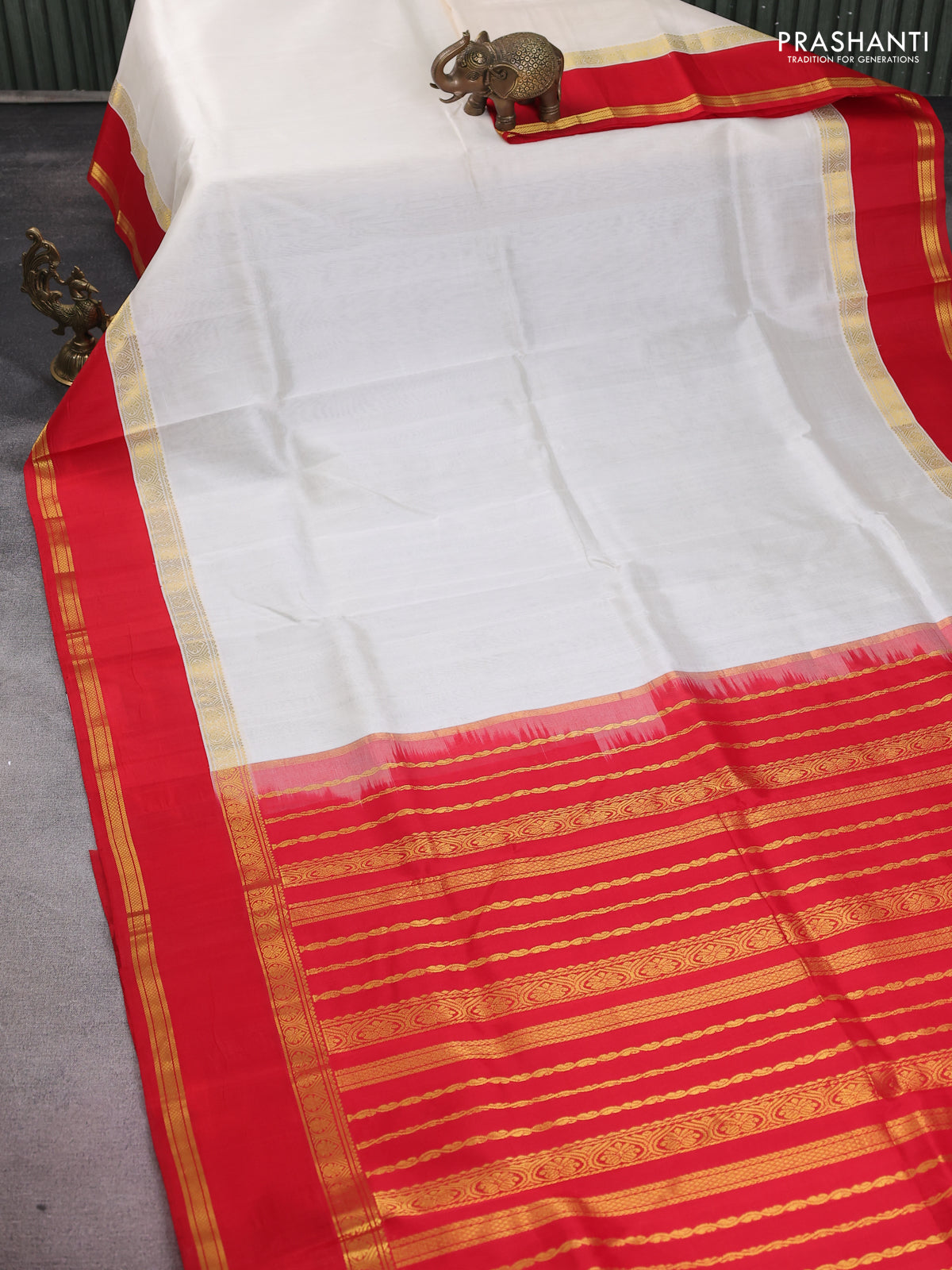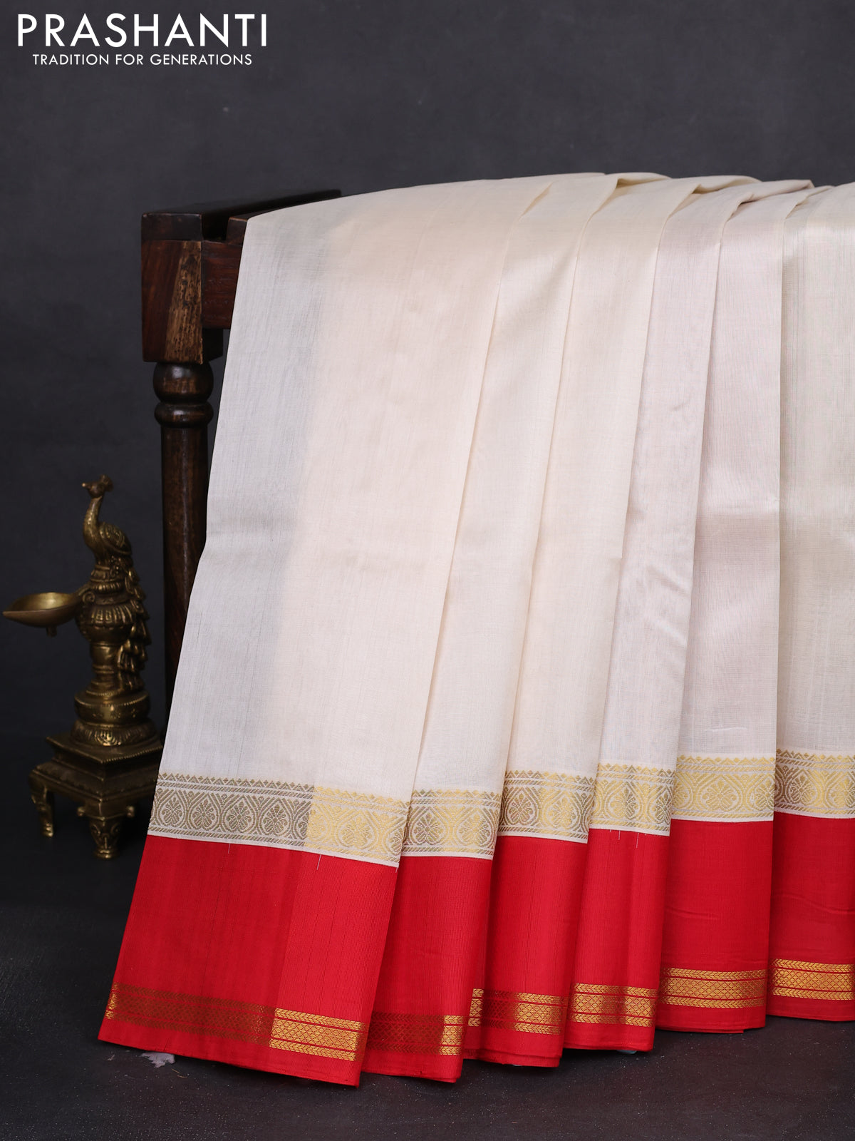 Kuppadam silk cotton saree off white and red with plain body and rettapet zari woven border