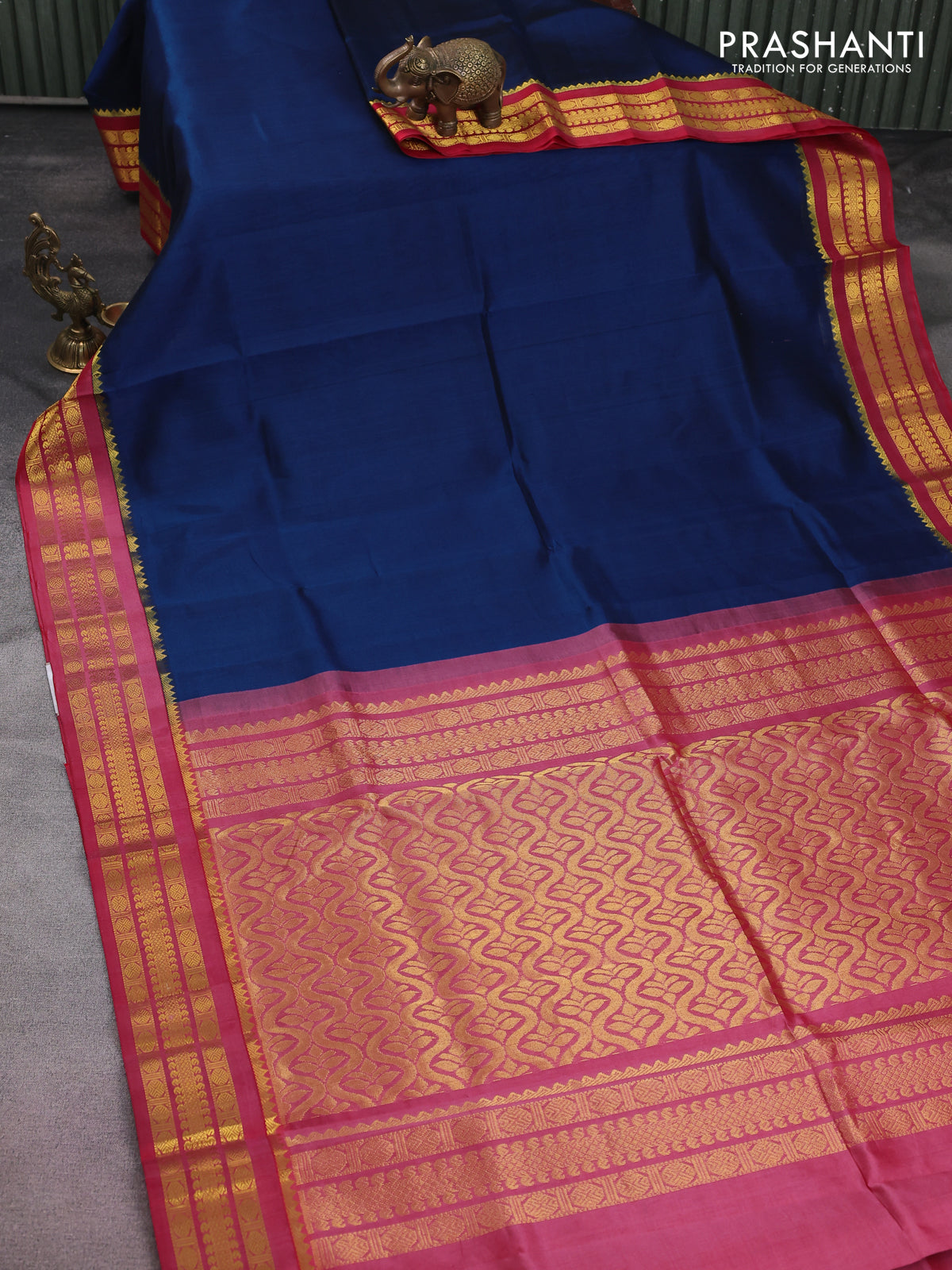 Kuppadam silk cotton saree peacock blue and maroon shade with plain body and zari woven border