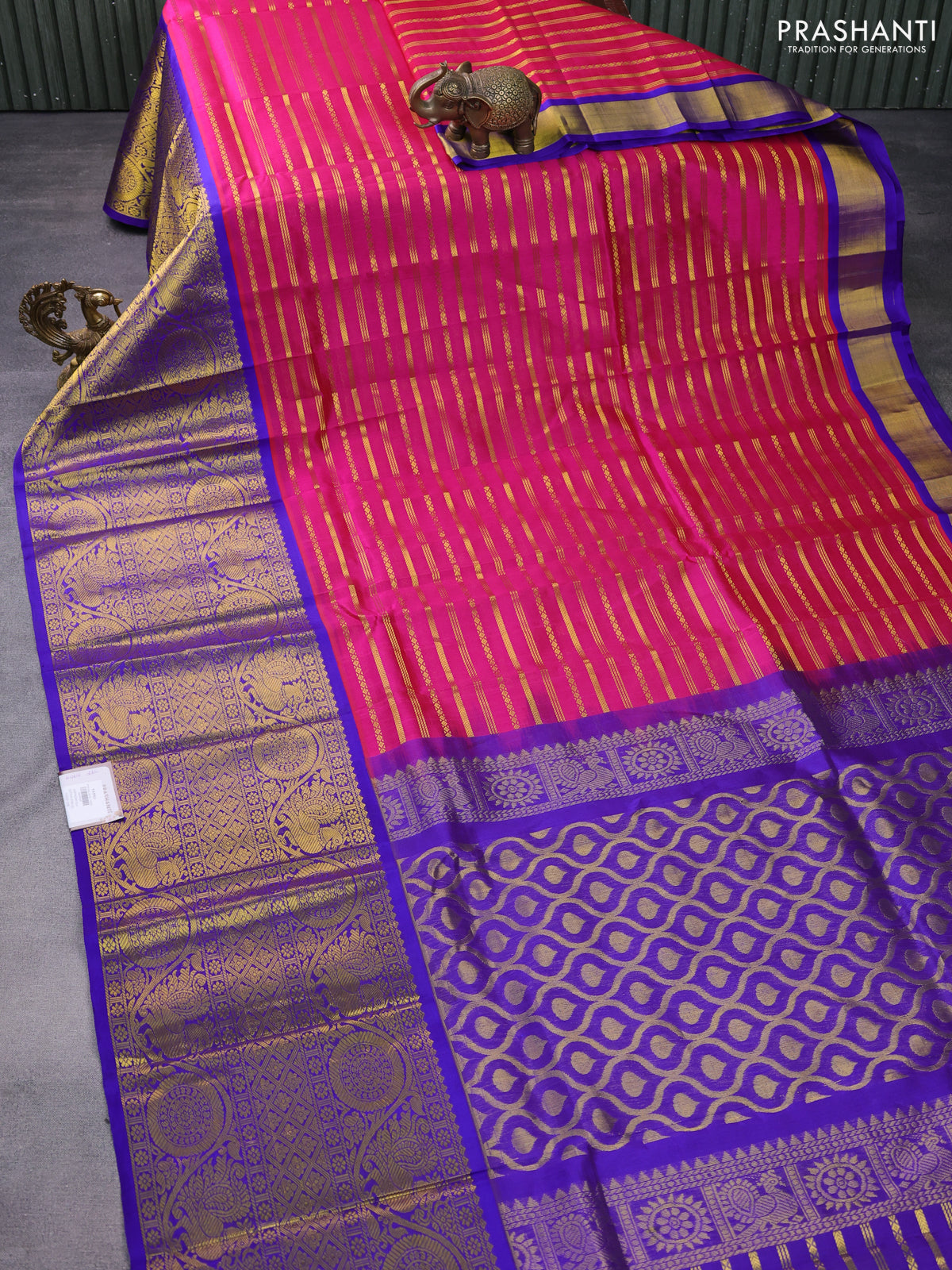 Kuppadam silk cotton saree pink and blue with allover zari woven veldhari pattern and long zari woven border