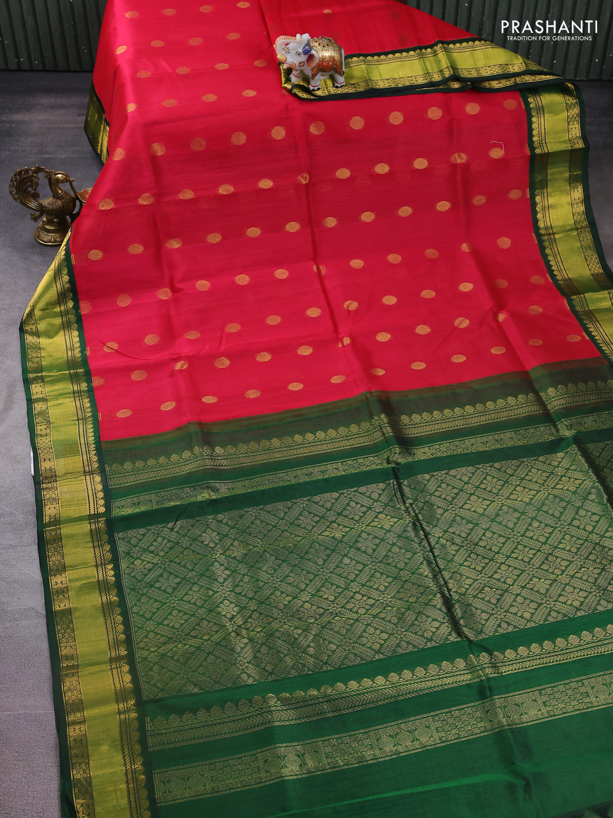 Kuppadam silk cotton saree red and green with rudhraksha zari woven buttas and zari woven border