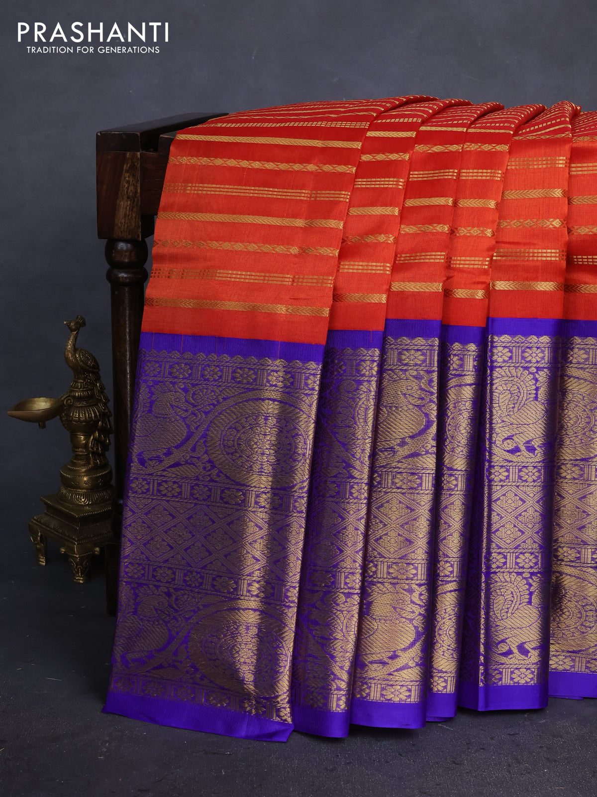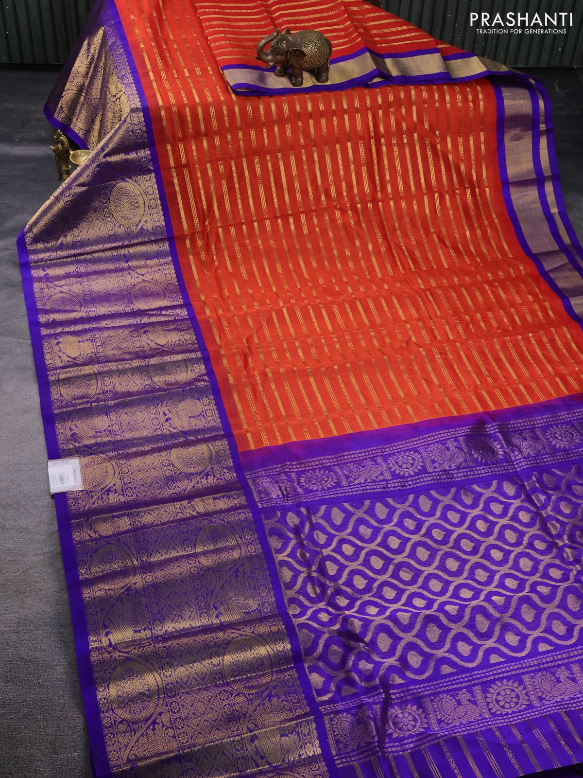 Kuppadam silk cotton saree rustic orange and blue with allover veldhari pattern and long zari woven border