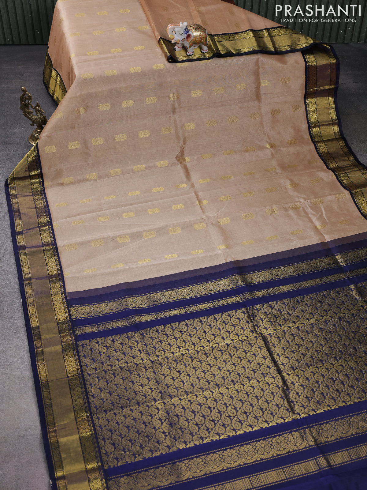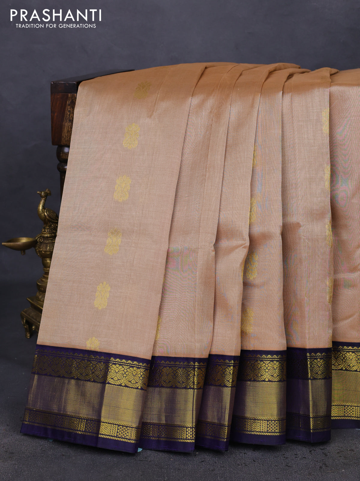 Kuppadam silk cotton saree sandal and dark blue with zari woven paisley buttas and zari woven border