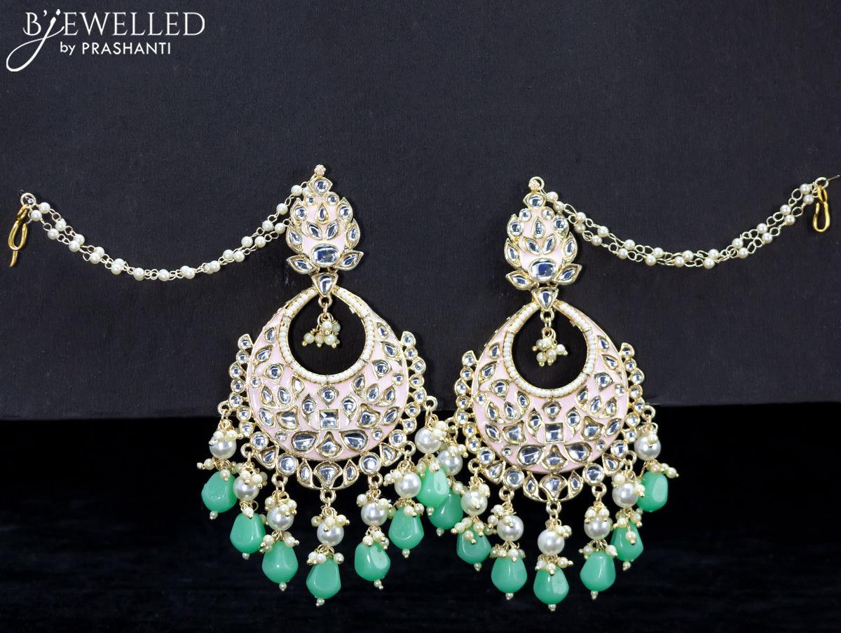 Light weight chandbali baby pink minakari earrings with teal green beads