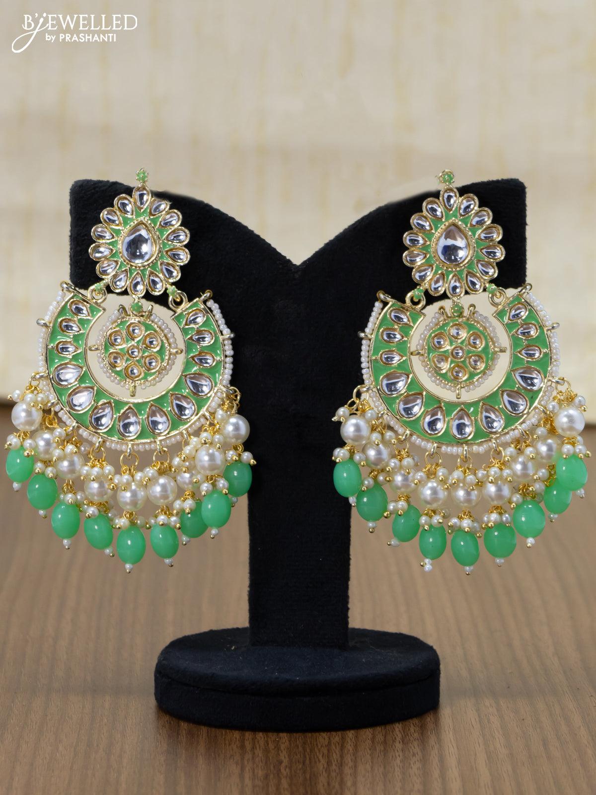 Light weight chandbali mint green minakari earrings with pearl maatal