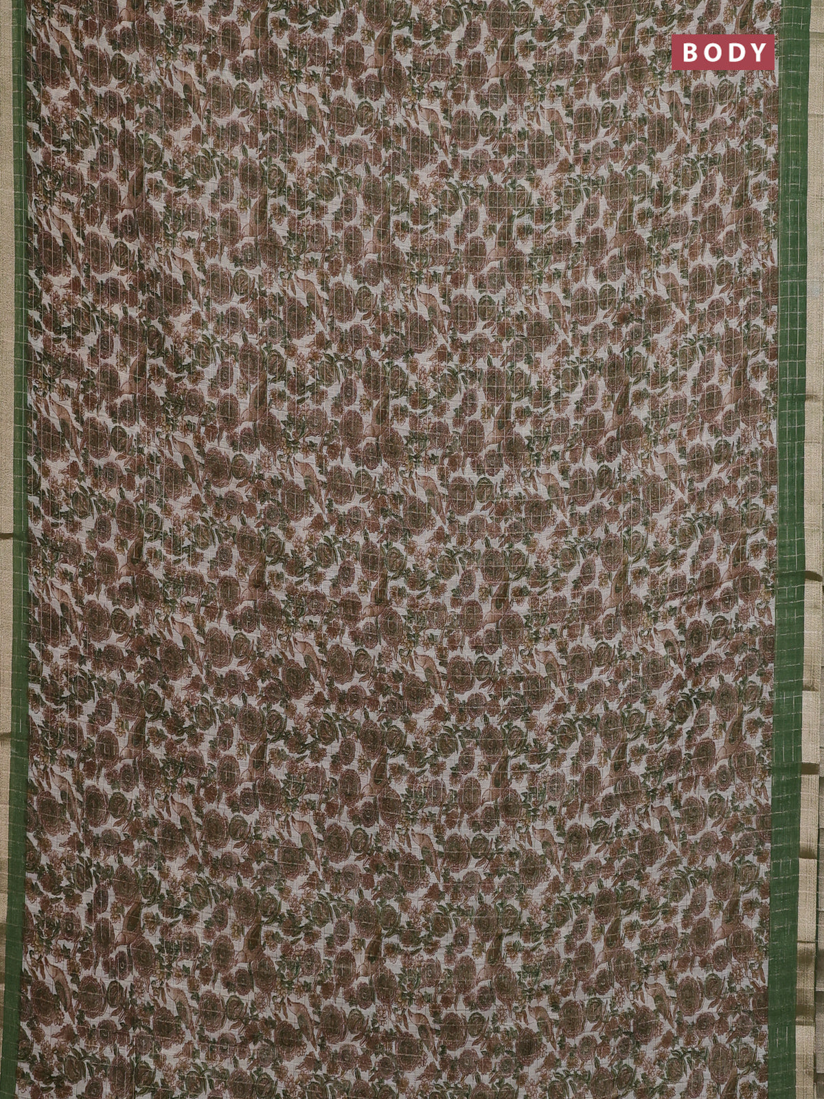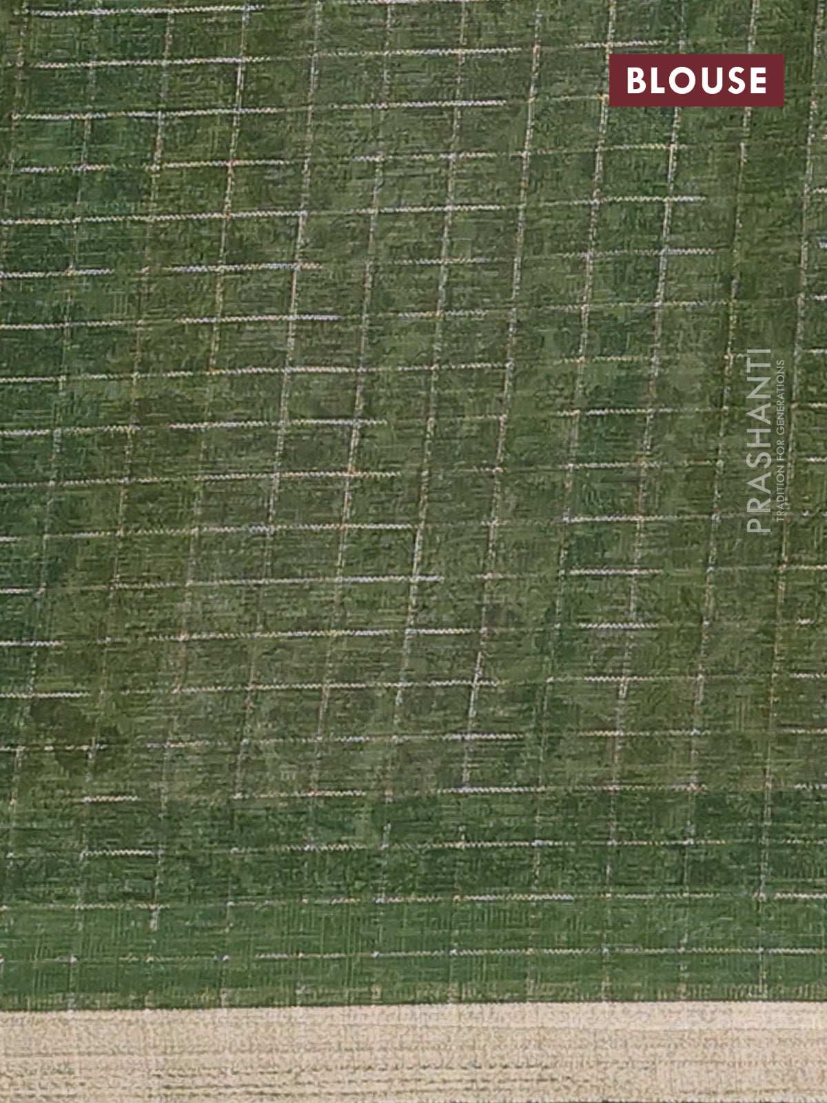 Linen cotton saree cream and green with allover prints & zari checks and zari woven border