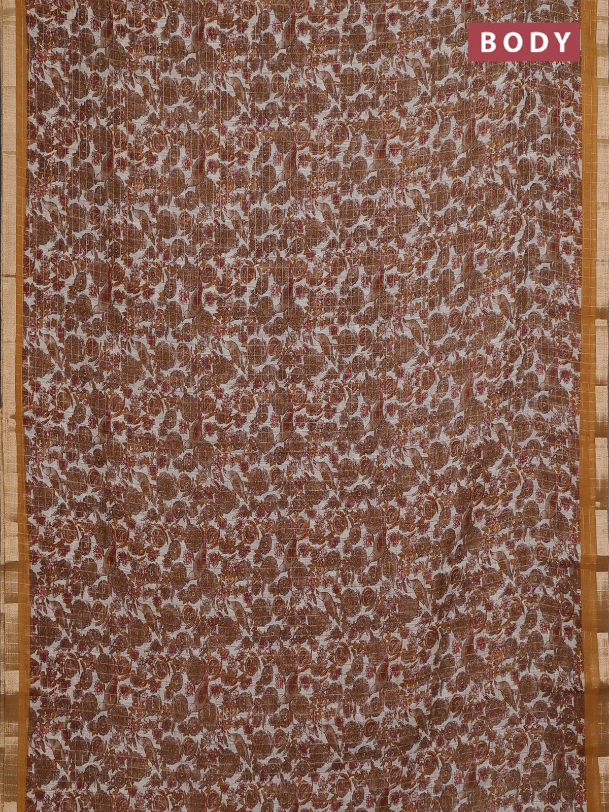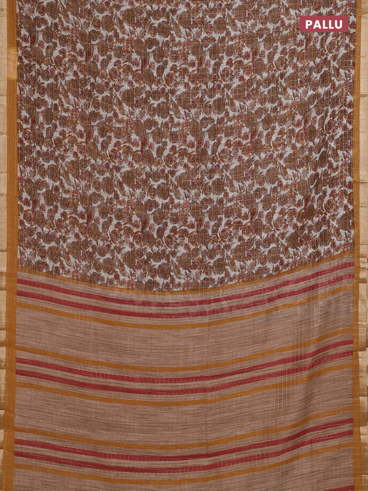 Linen cotton saree cream and mustard yellow with allover prints & zari checks and zari woven border