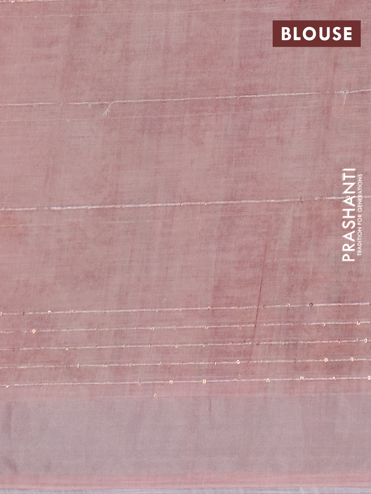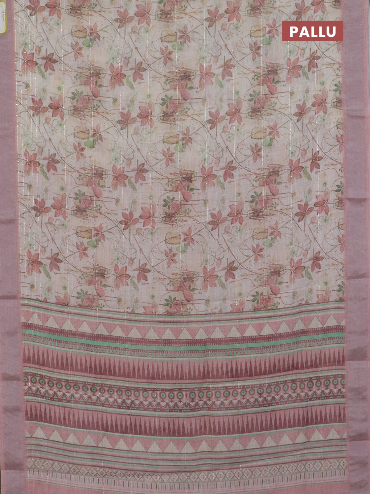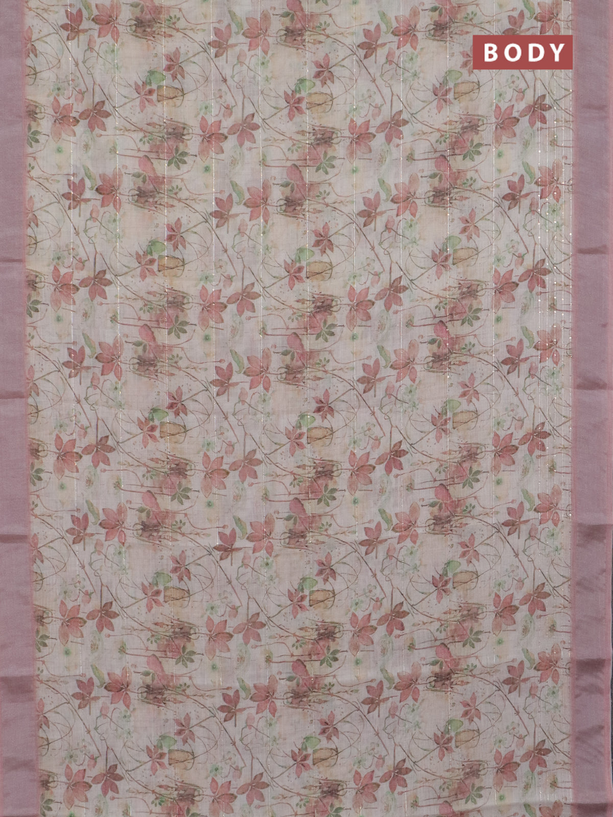 Linen cotton saree cream and peach shade with allover floral pirnts & sequin work and silver zari woven border