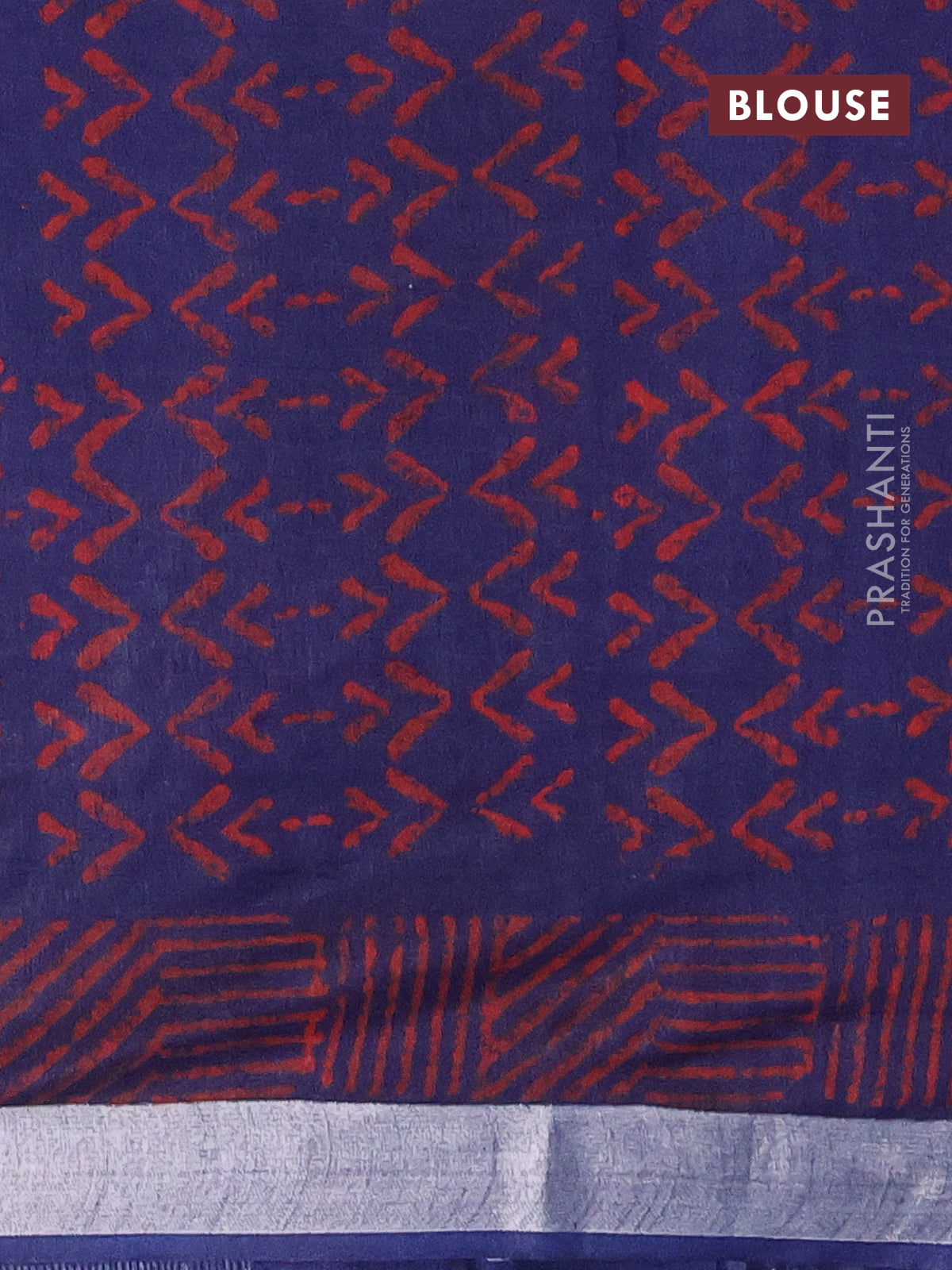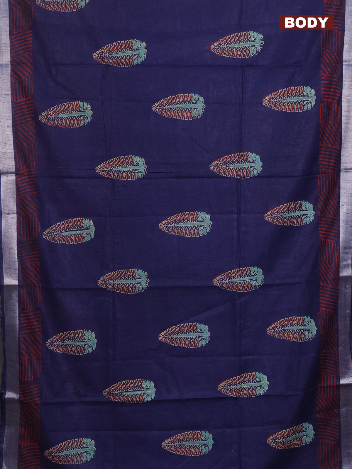 Linen cotton saree navy blue and red with butta prints and silver zari woven border