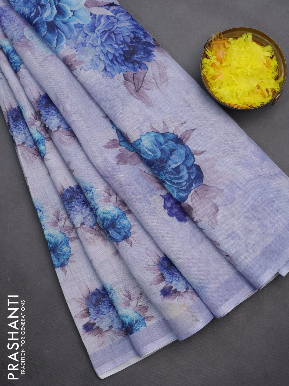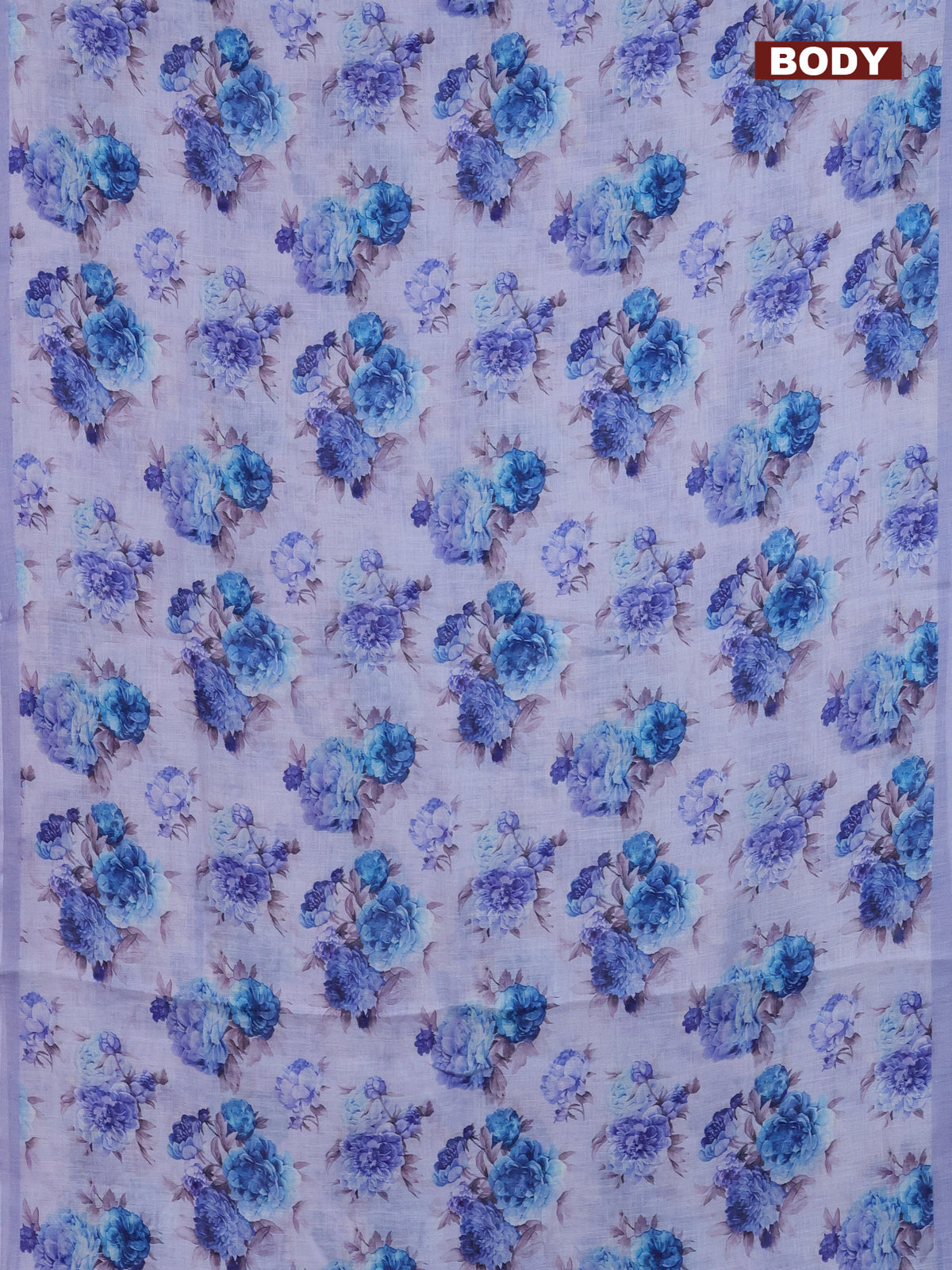 Linen cotton saree pastel lavender with allover floral digital prints and simple border