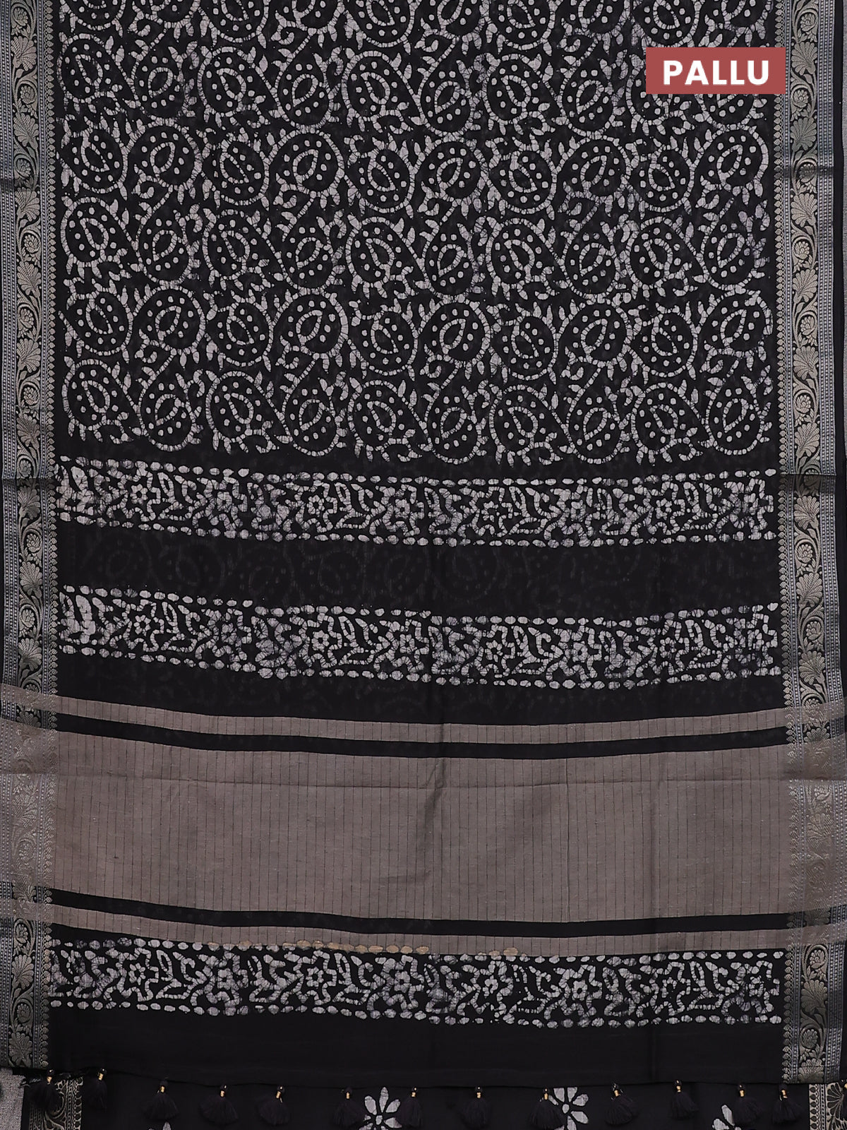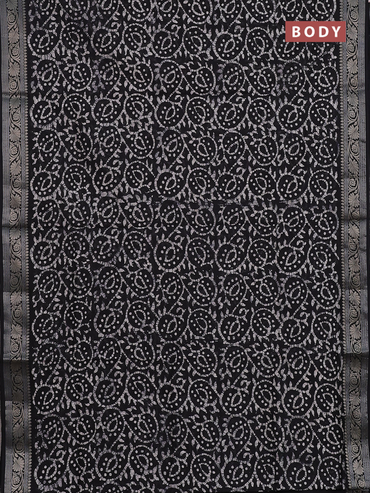 Maheshwari silk cotton saree black with allover batik prints and zari woven border
