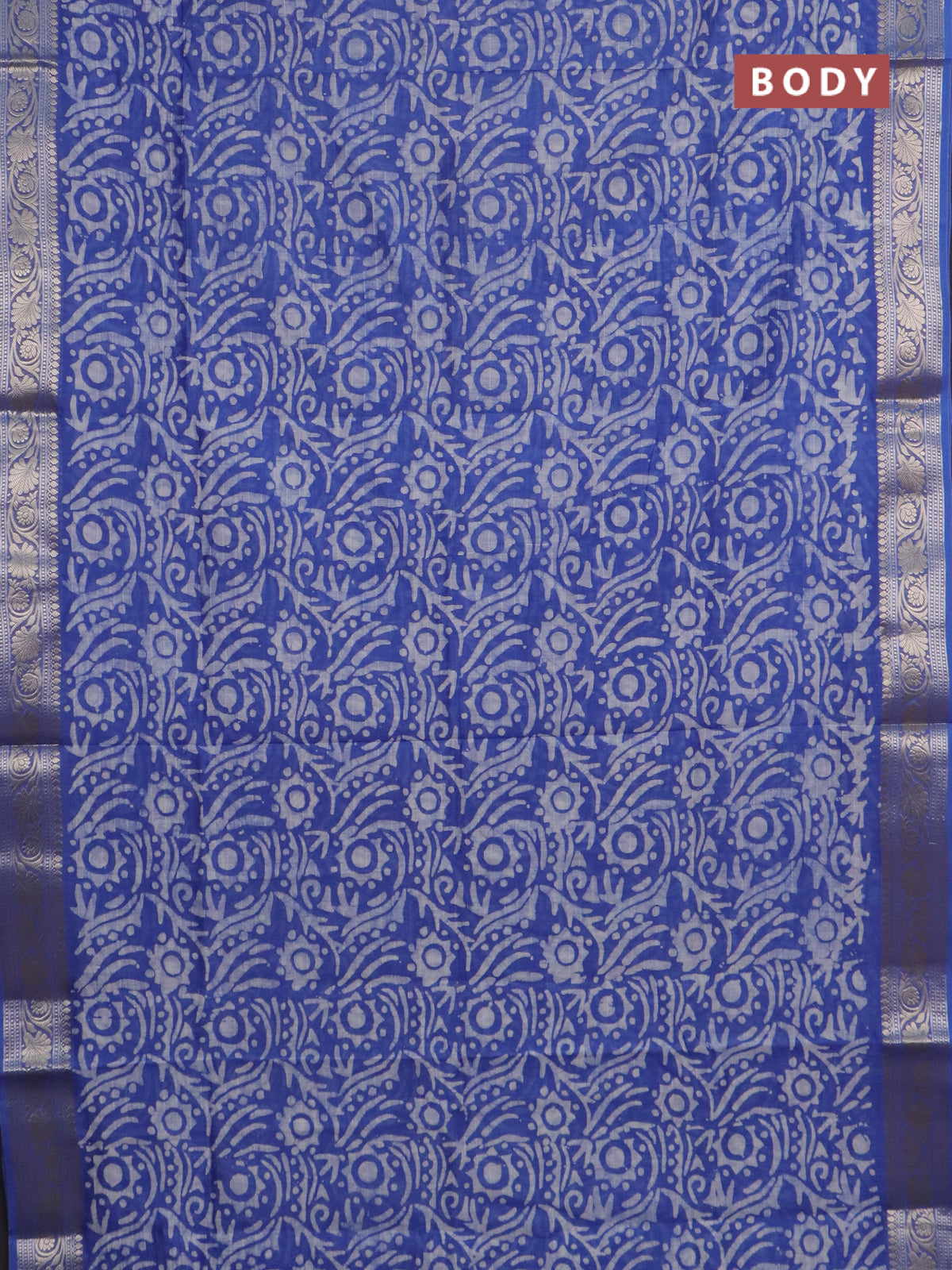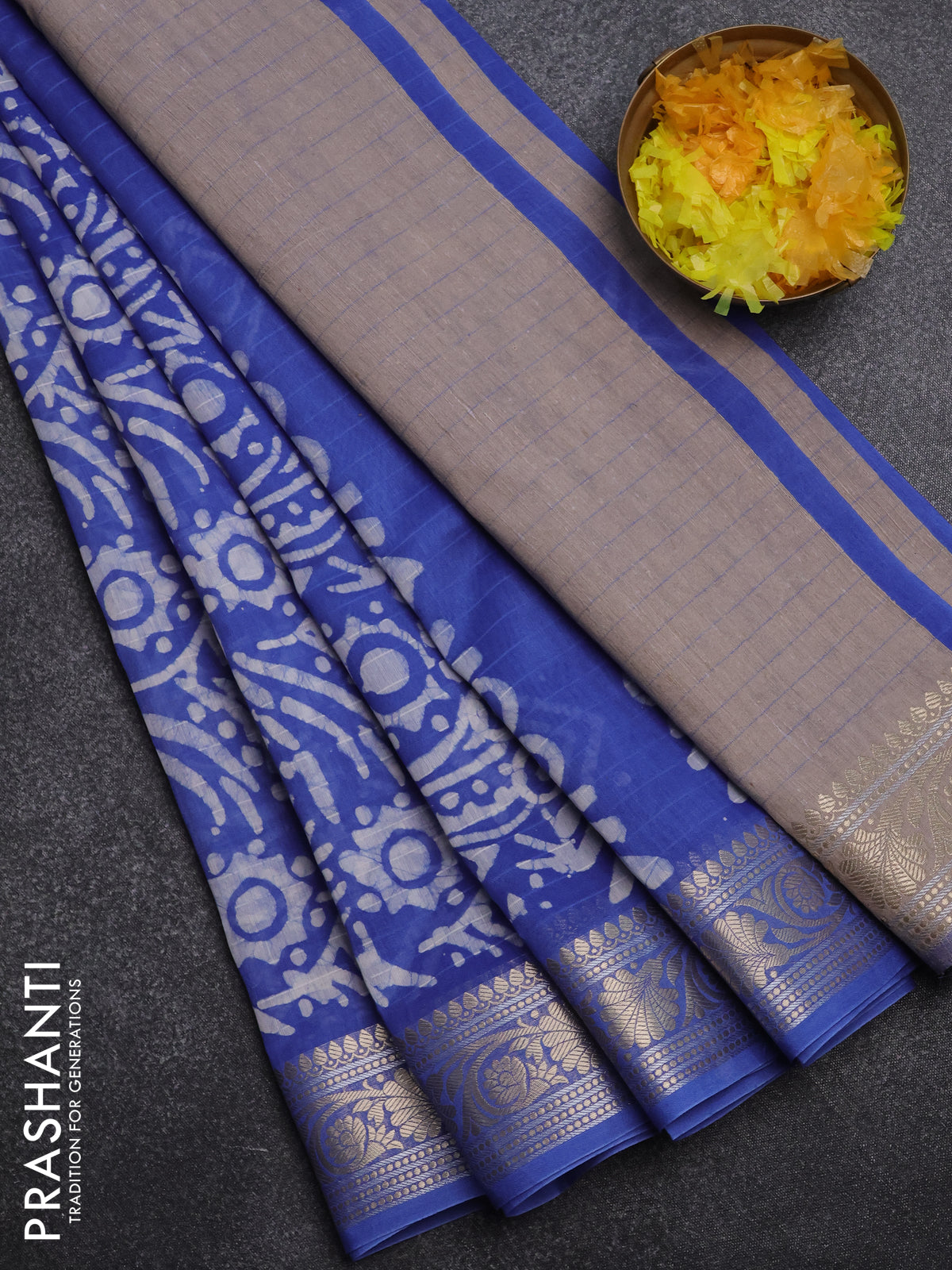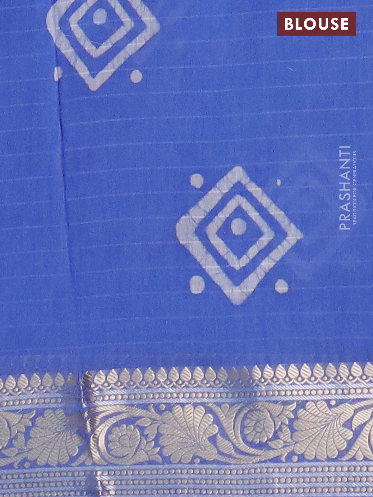 Maheshwari silk cotton saree blue with batik prints and zari woven border