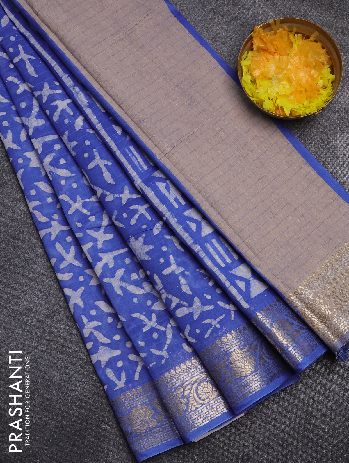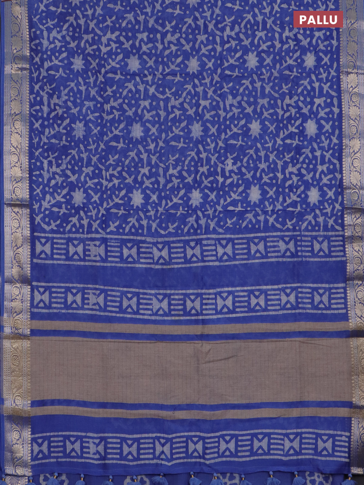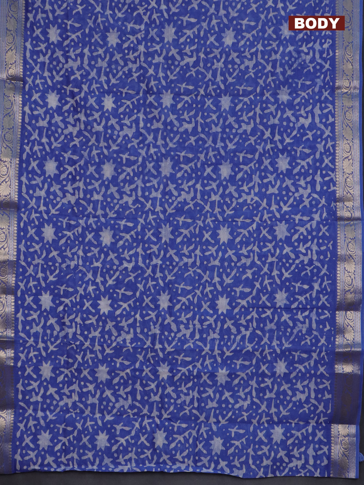 Maheshwari silk cotton saree blue with batik prints and zari woven border
