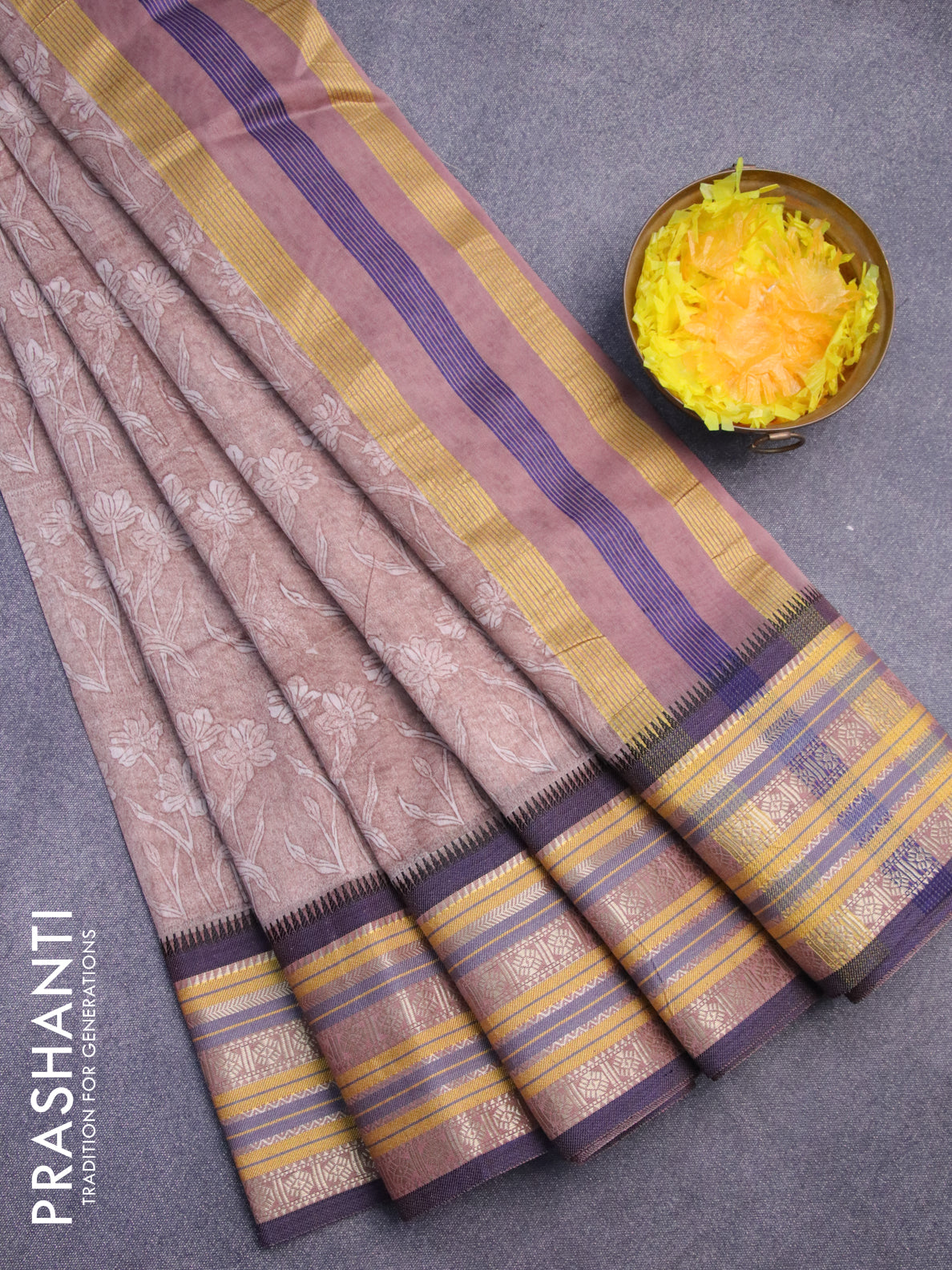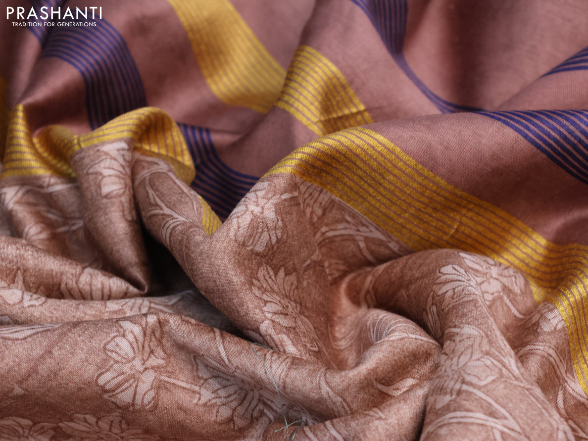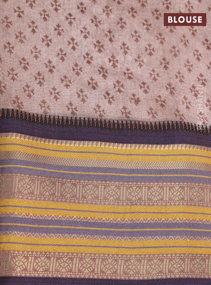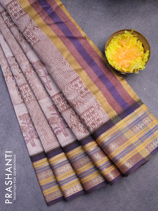 Maheshwari silk cotton saree brown shade and blue with allover floral prints and thread & zari woven border