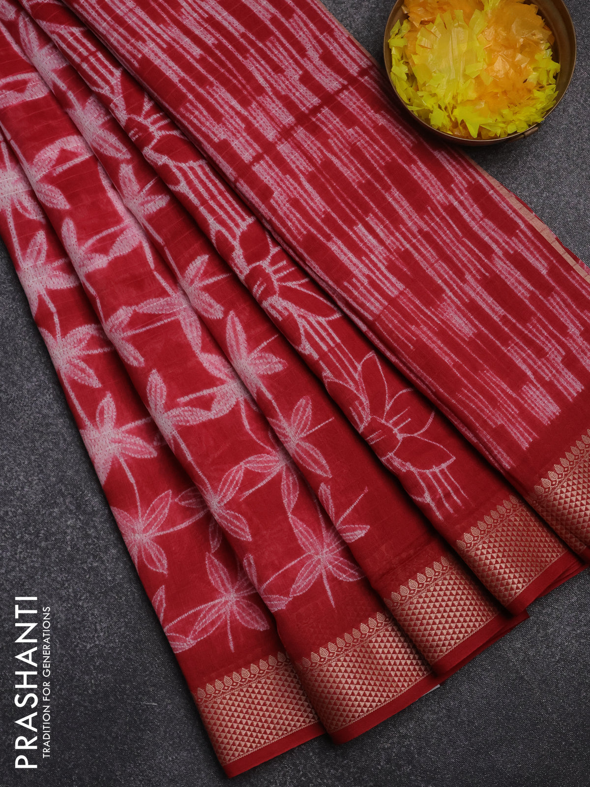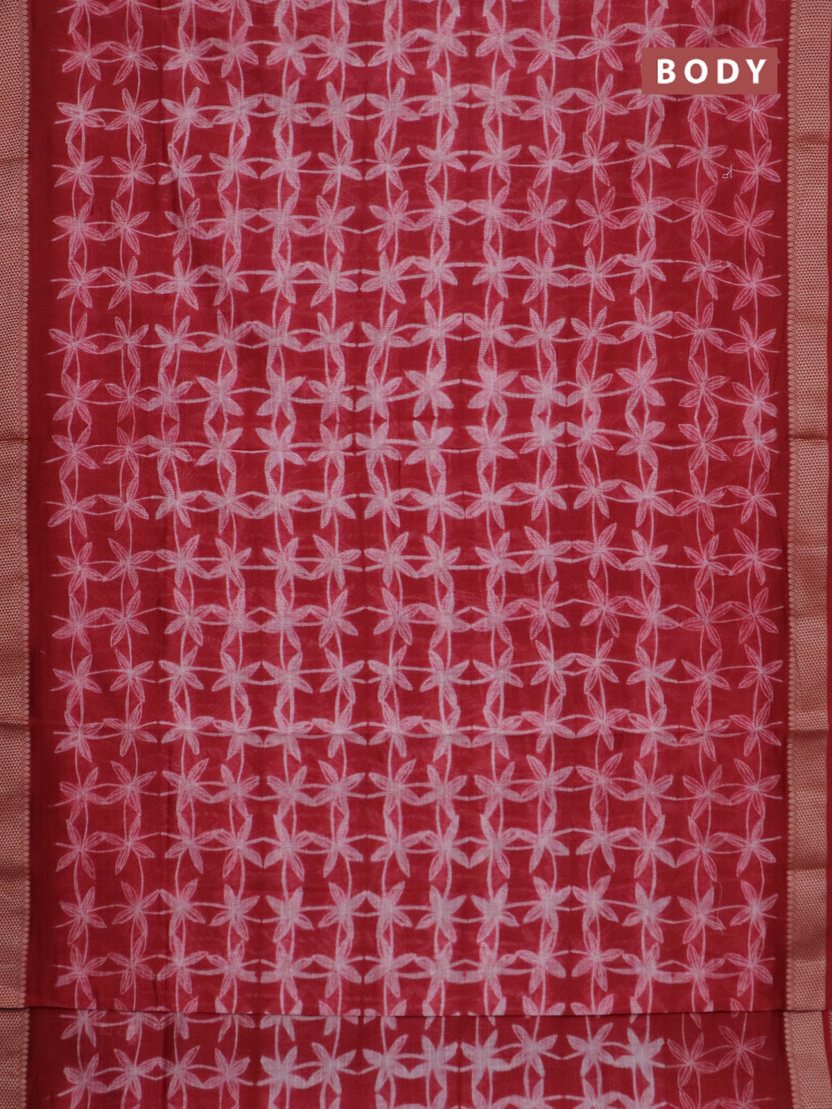 Maheshwari silk cotton saree maroon with allover shibori prints and thread woven border