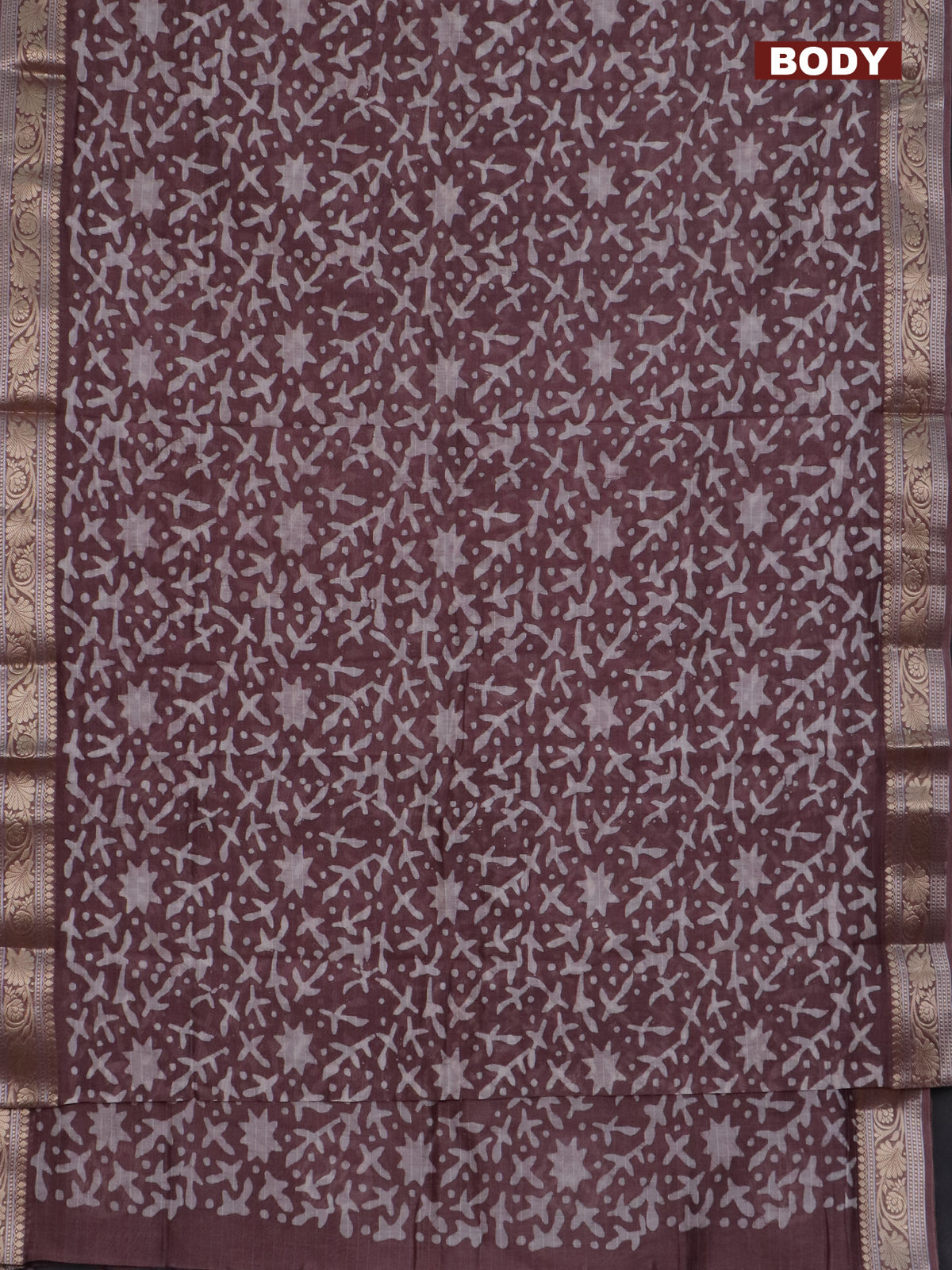Maheshwari silk cotton saree pastel wine with batik prints and zari woven border