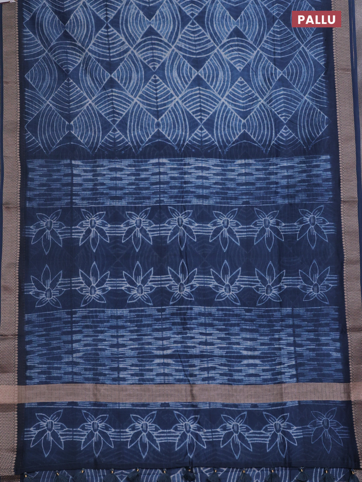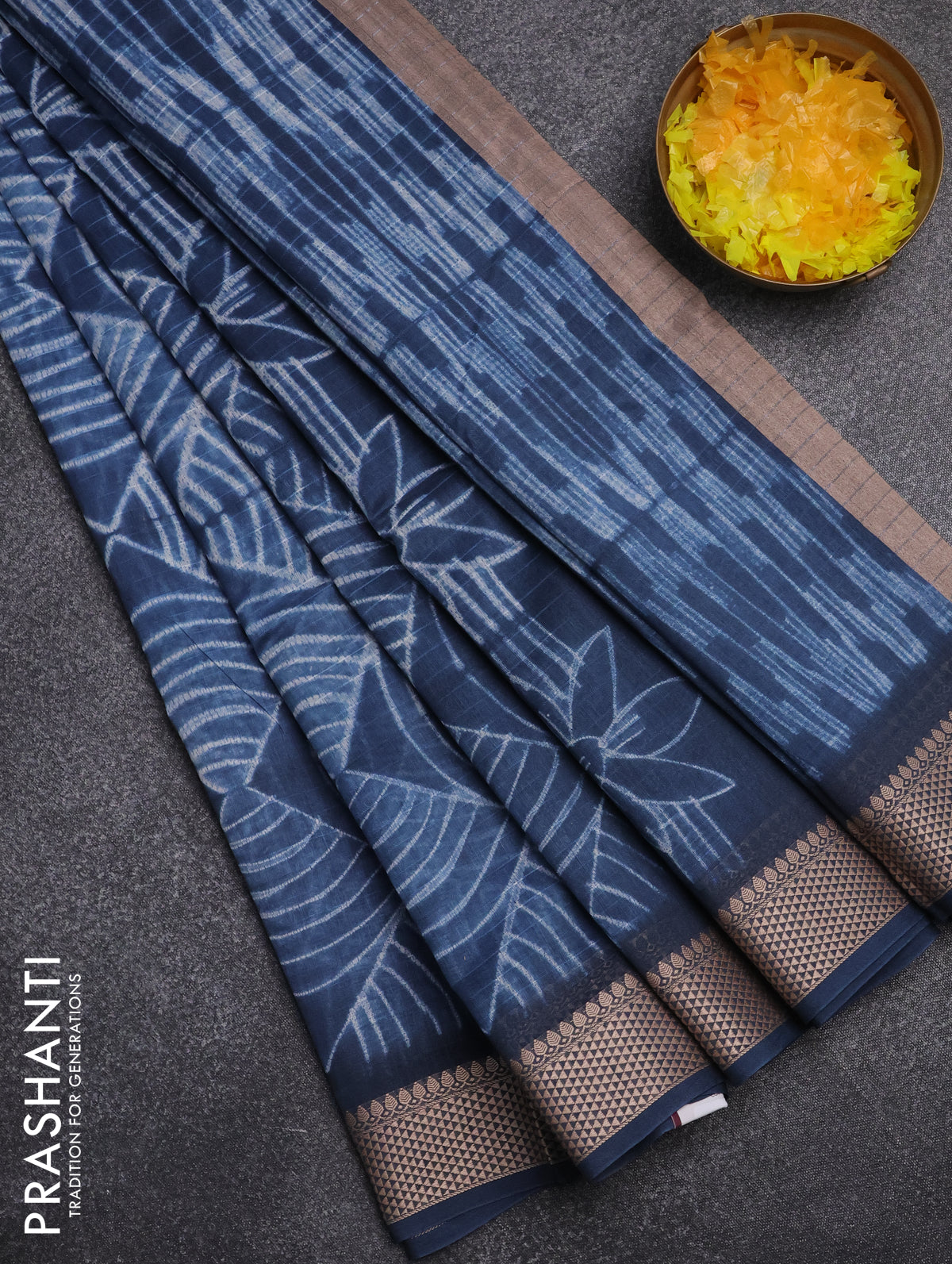 Maheshwari silk cotton saree peacock blue with allover shibori prints and thread woven border