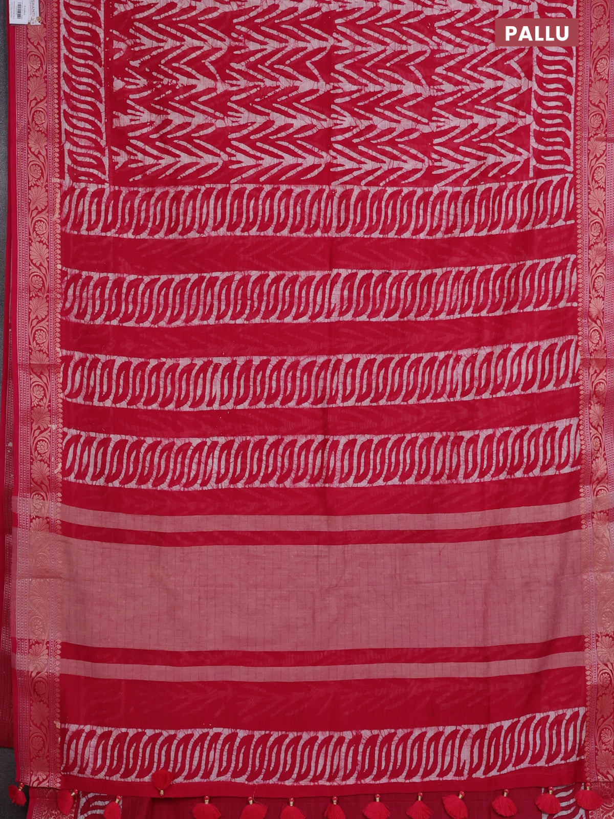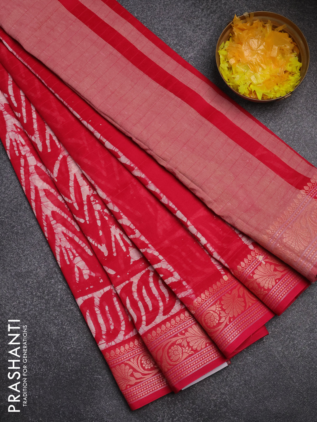 Maheshwari silk cotton saree pink with batik prints and zari woven border