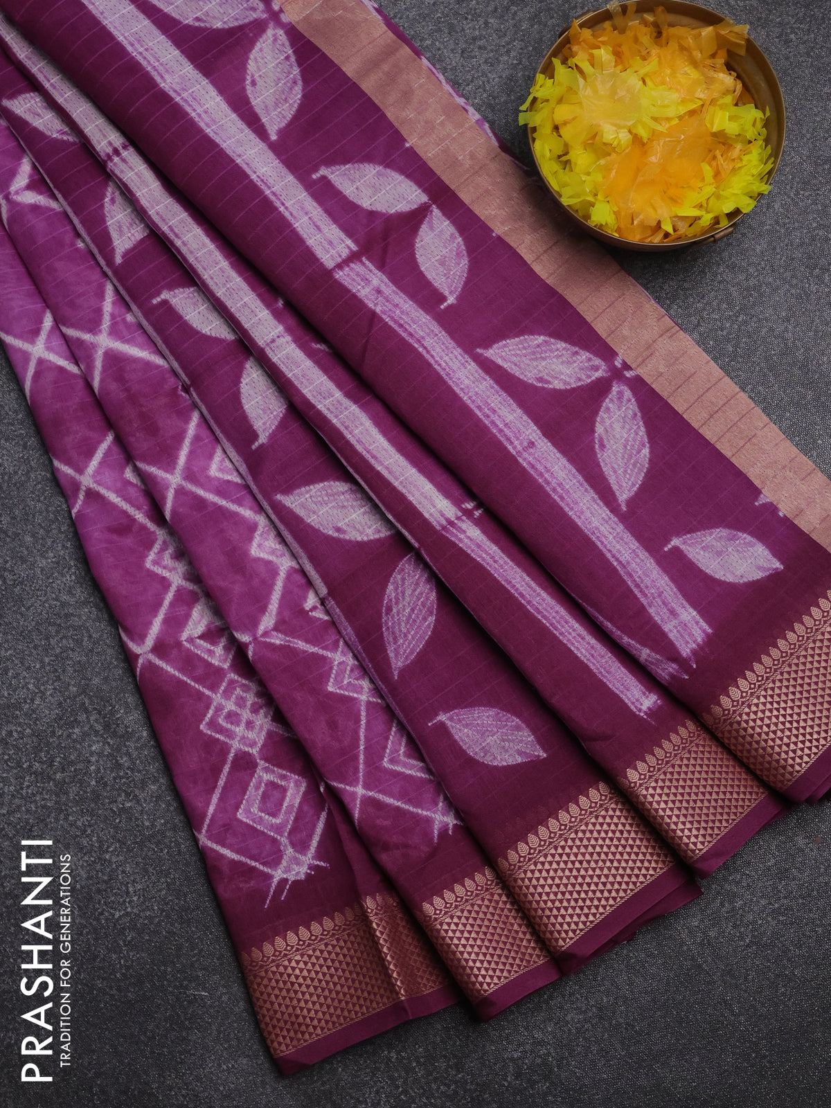 Maheshwari silk cotton saree purple with allover shibori prints and thread woven border