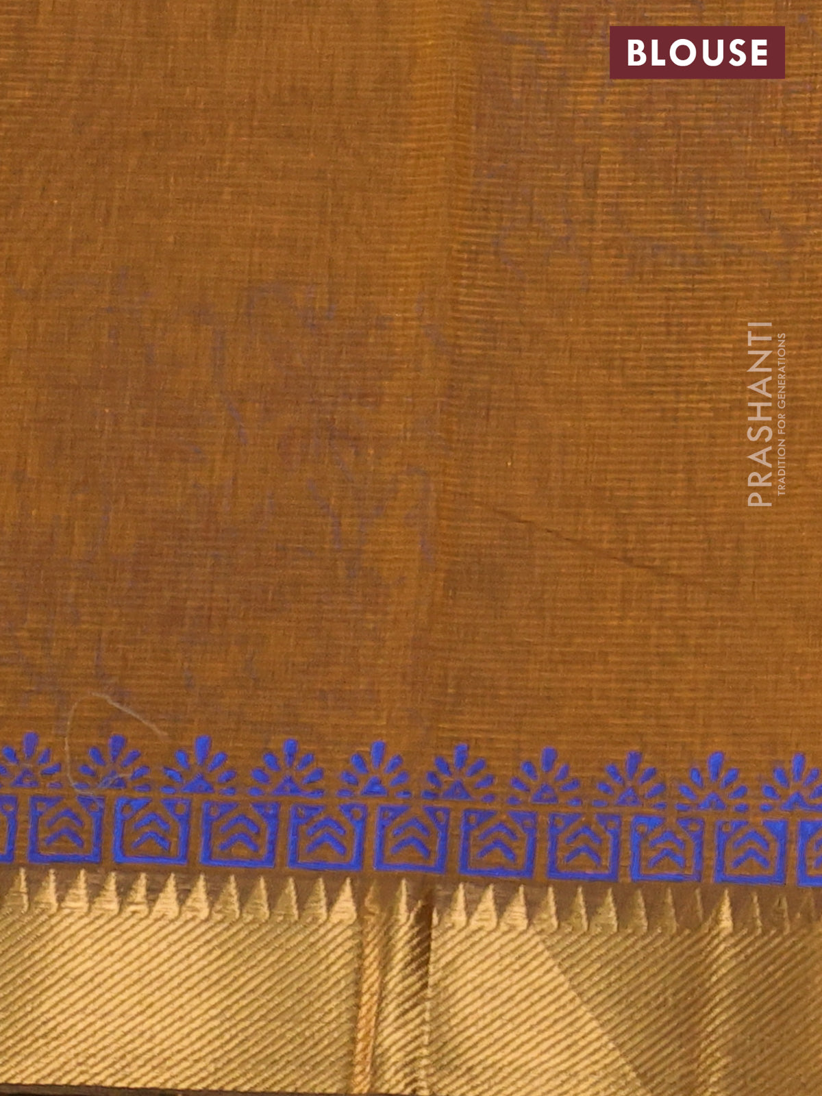 Mangalgiri cotton block printed saree dark mustard with allover prints and zari woven border