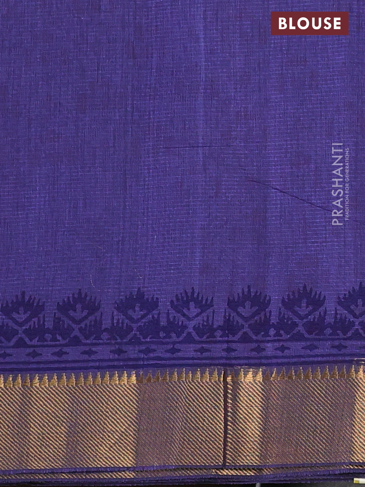 Mangalgiri cotton block printed saree violet with allover butta prints and zari woven border