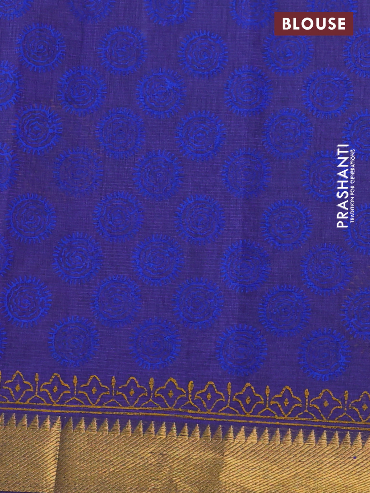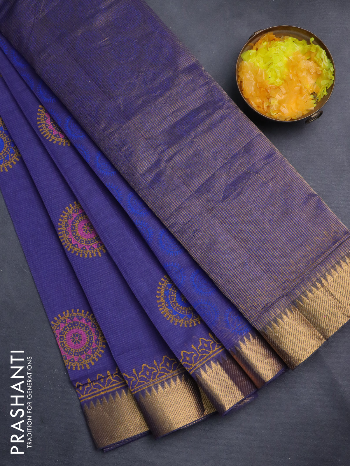 Mangalgiri cotton block printed saree violet with butta prints and zari woven border