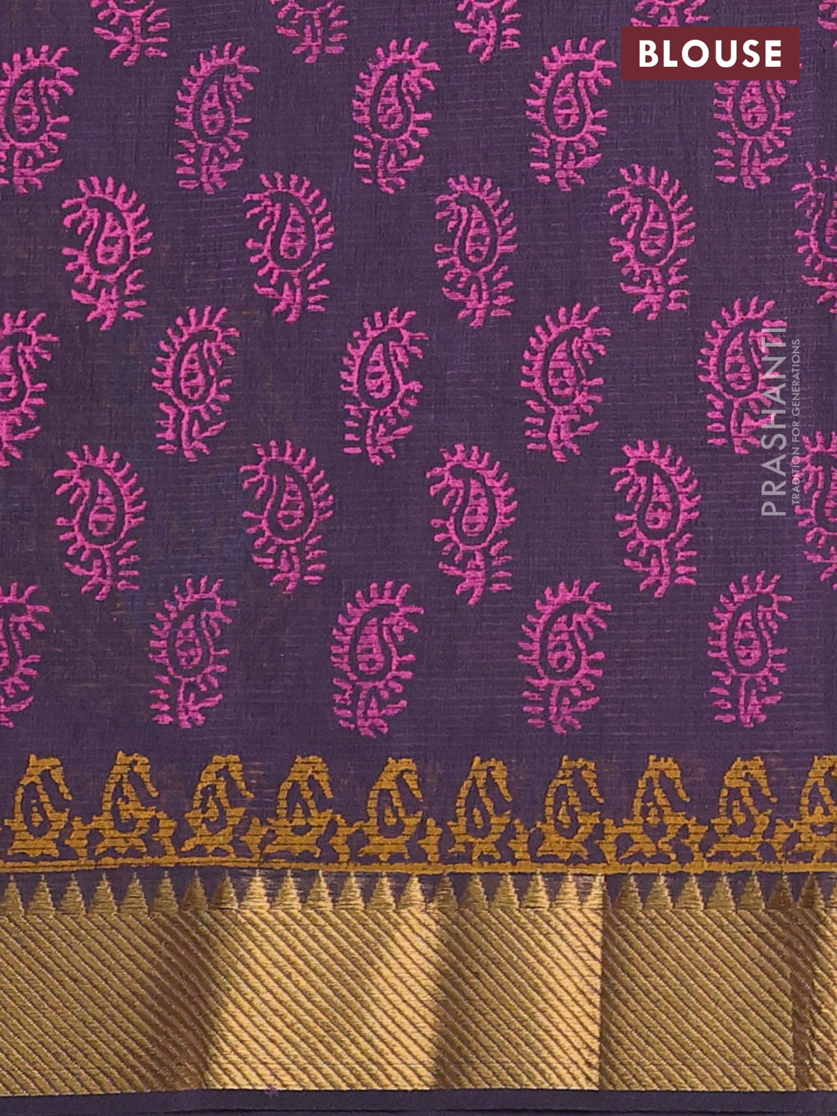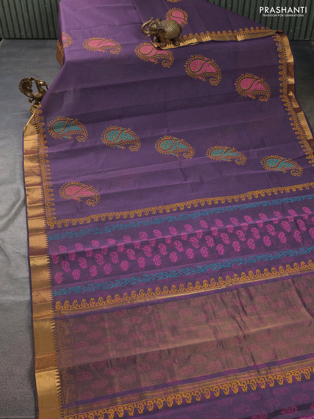 Mangalgiri cotton block printed saree wine shade with butta prints and zari woven border