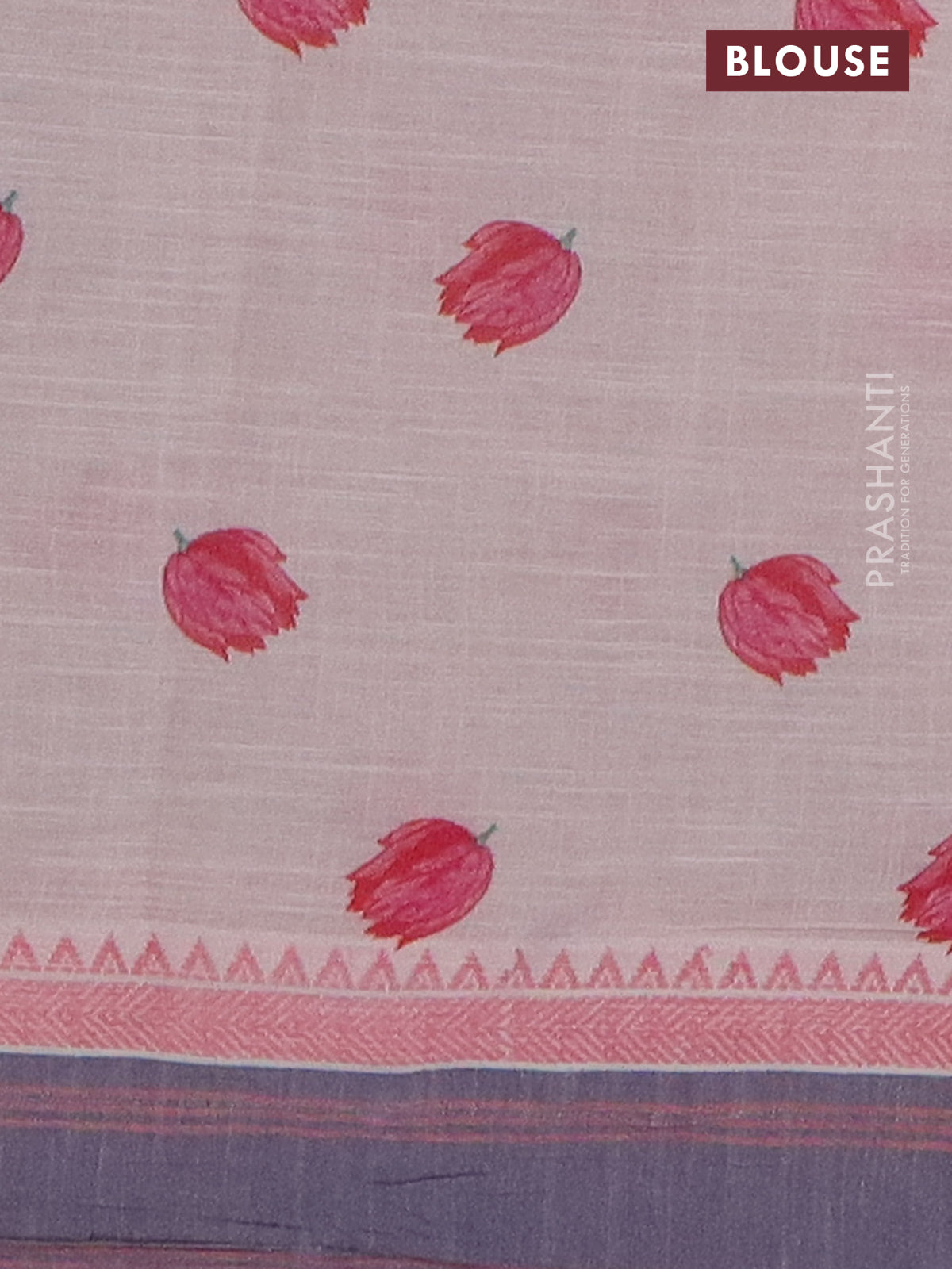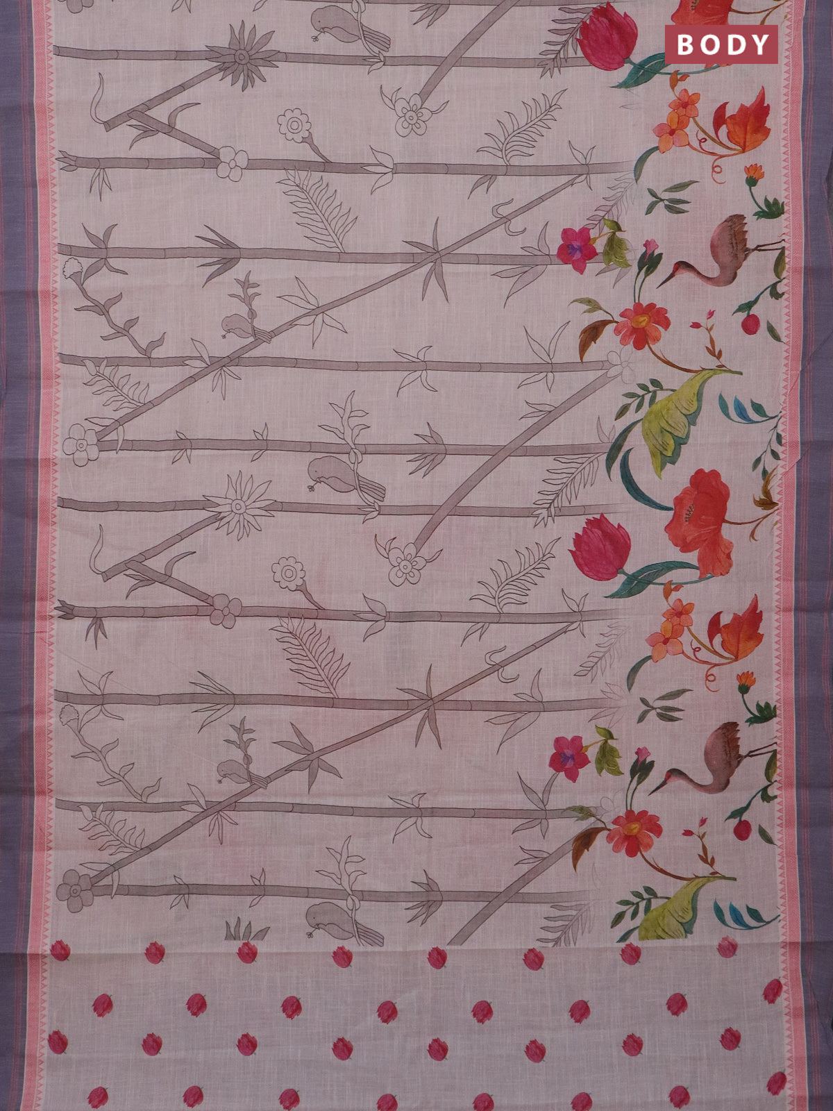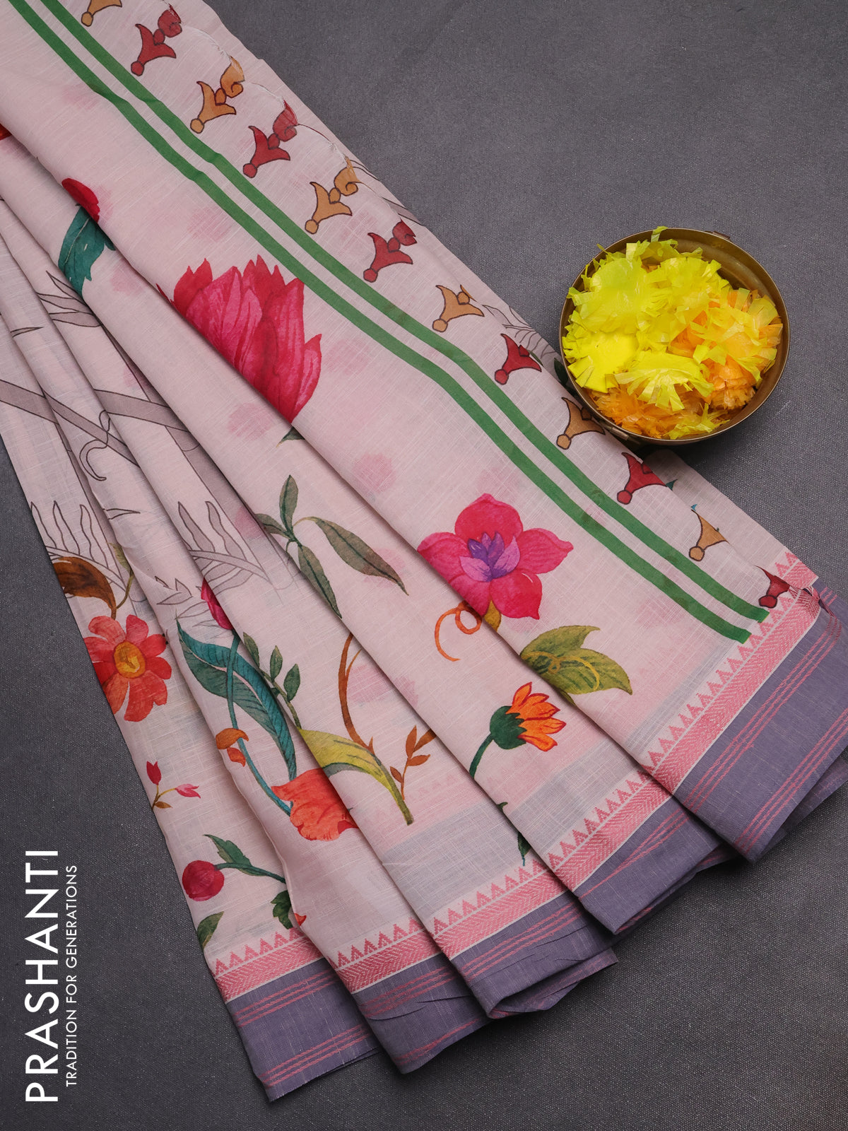 Mangalgiri cotton saree beige and grey with allover floral prints and thread woven border
