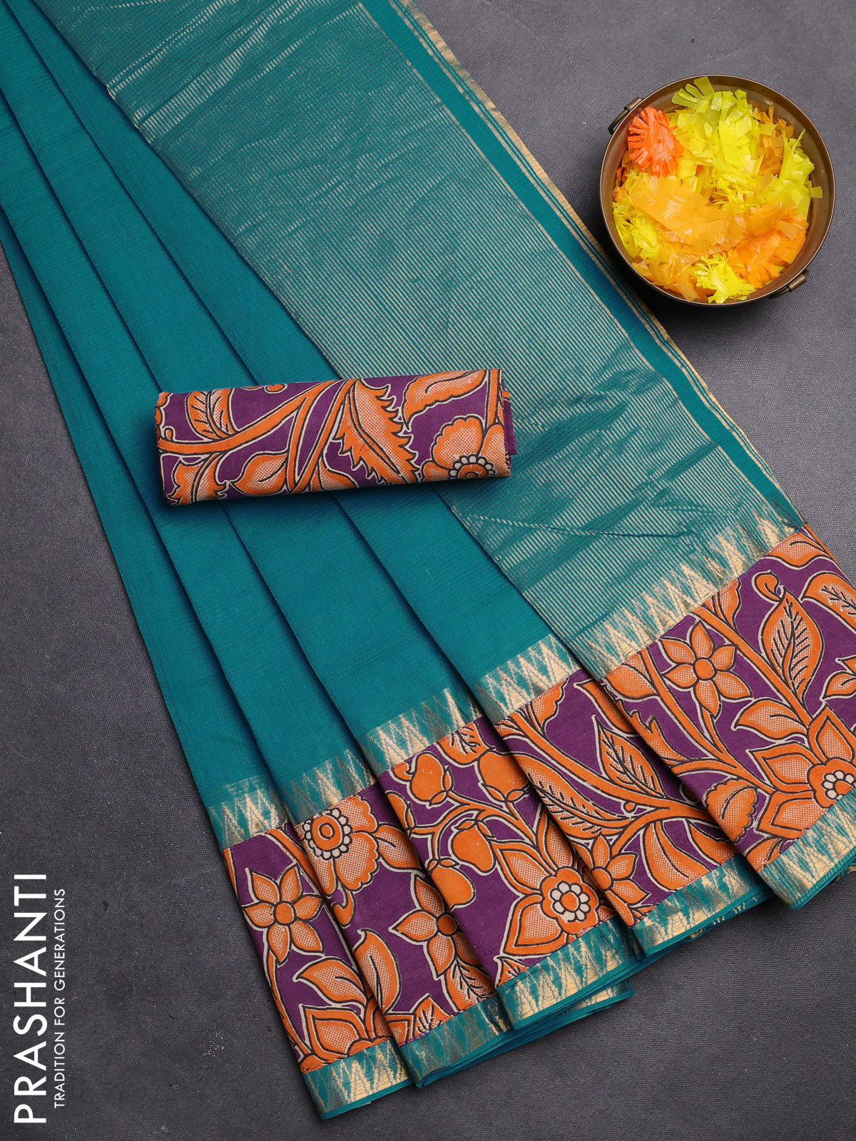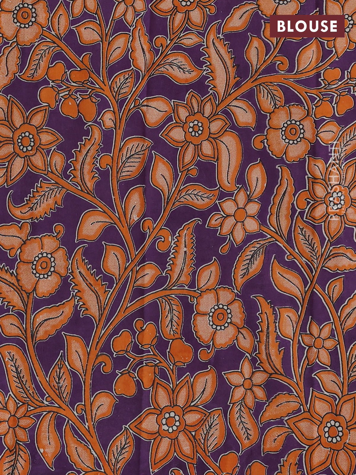 Mangalgiri cotton saree blue and purple with plain body and kalamkari applique work border