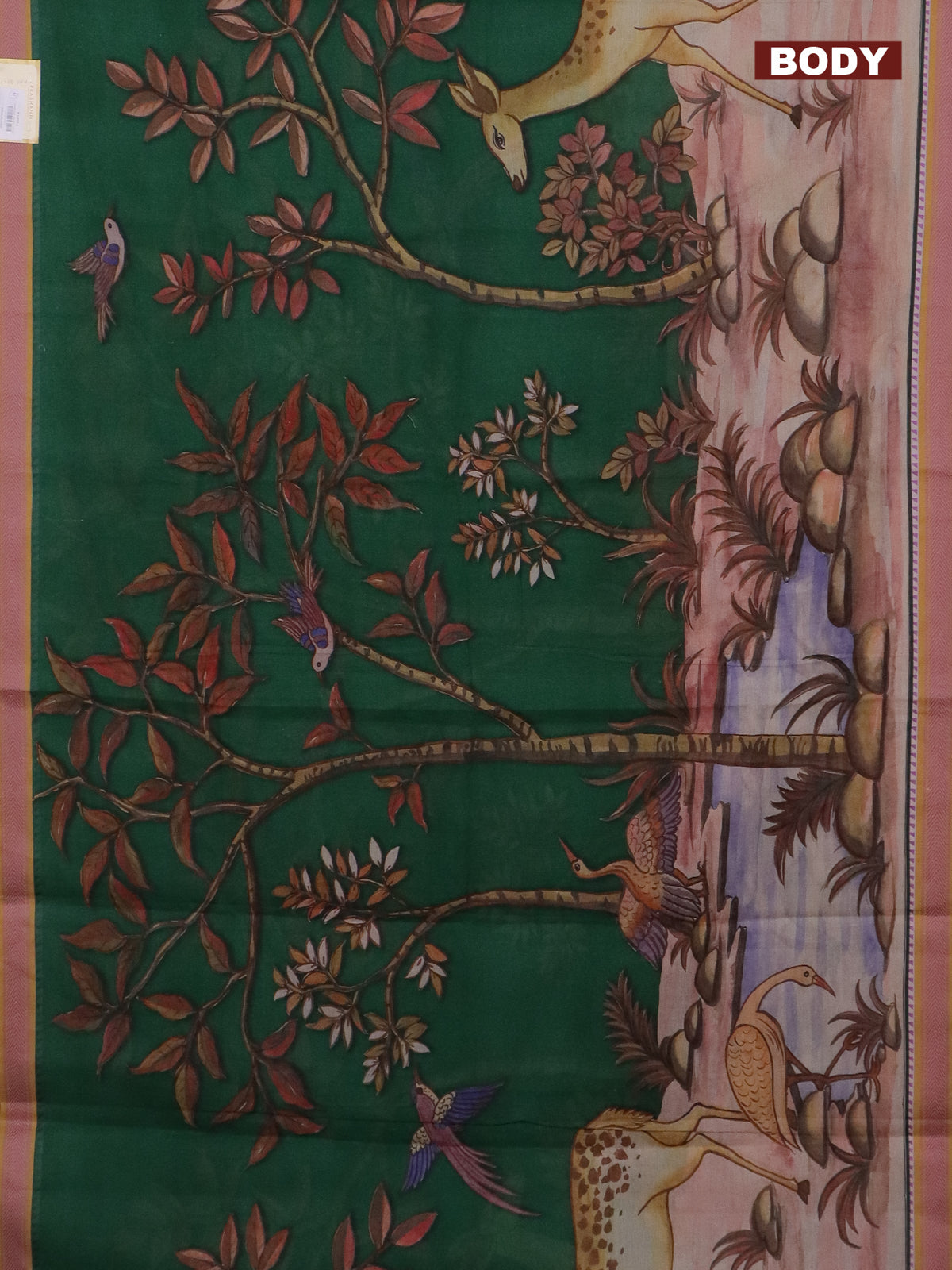 Mangalgiri cotton saree green and beige mustard yellow with allover prints and thread woven border