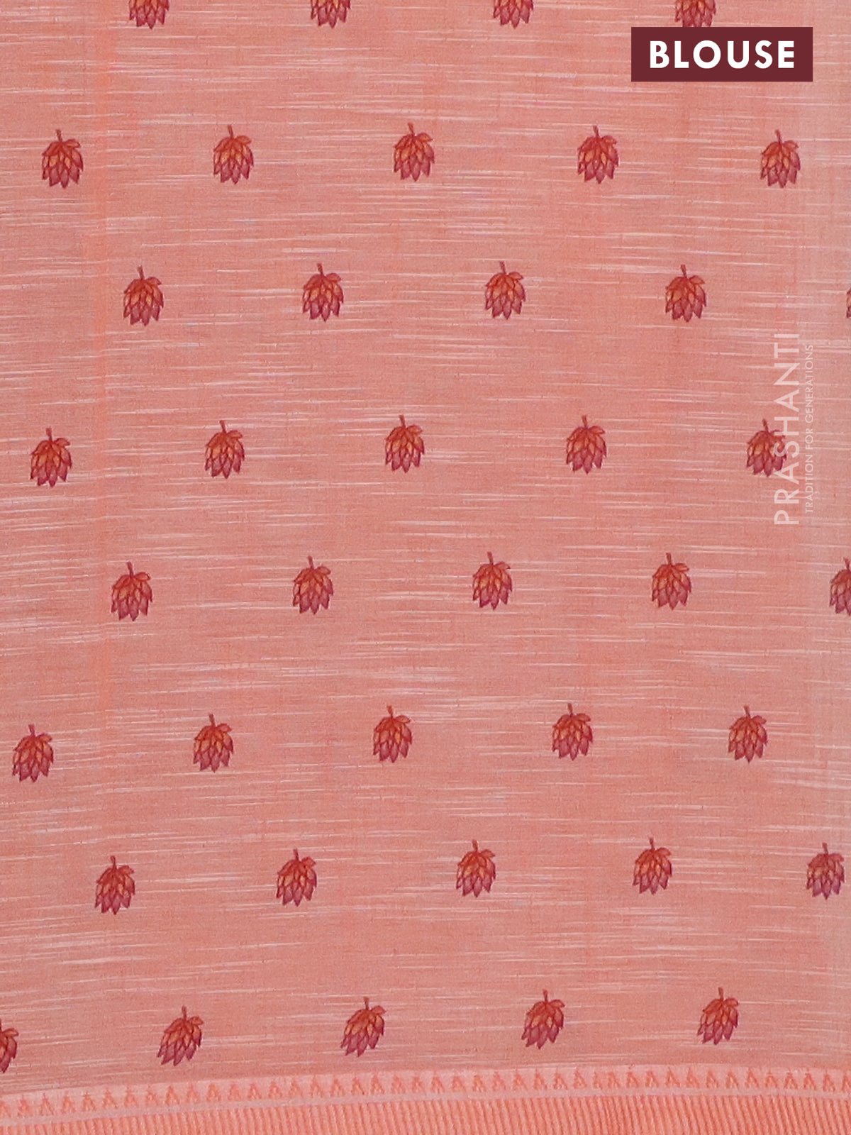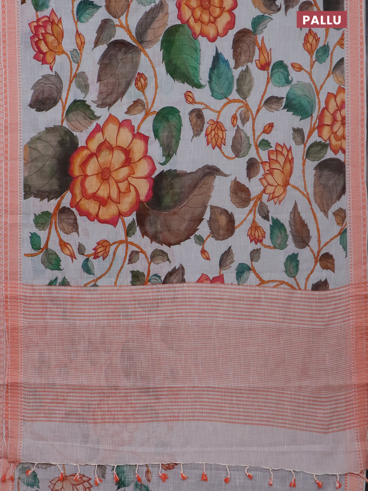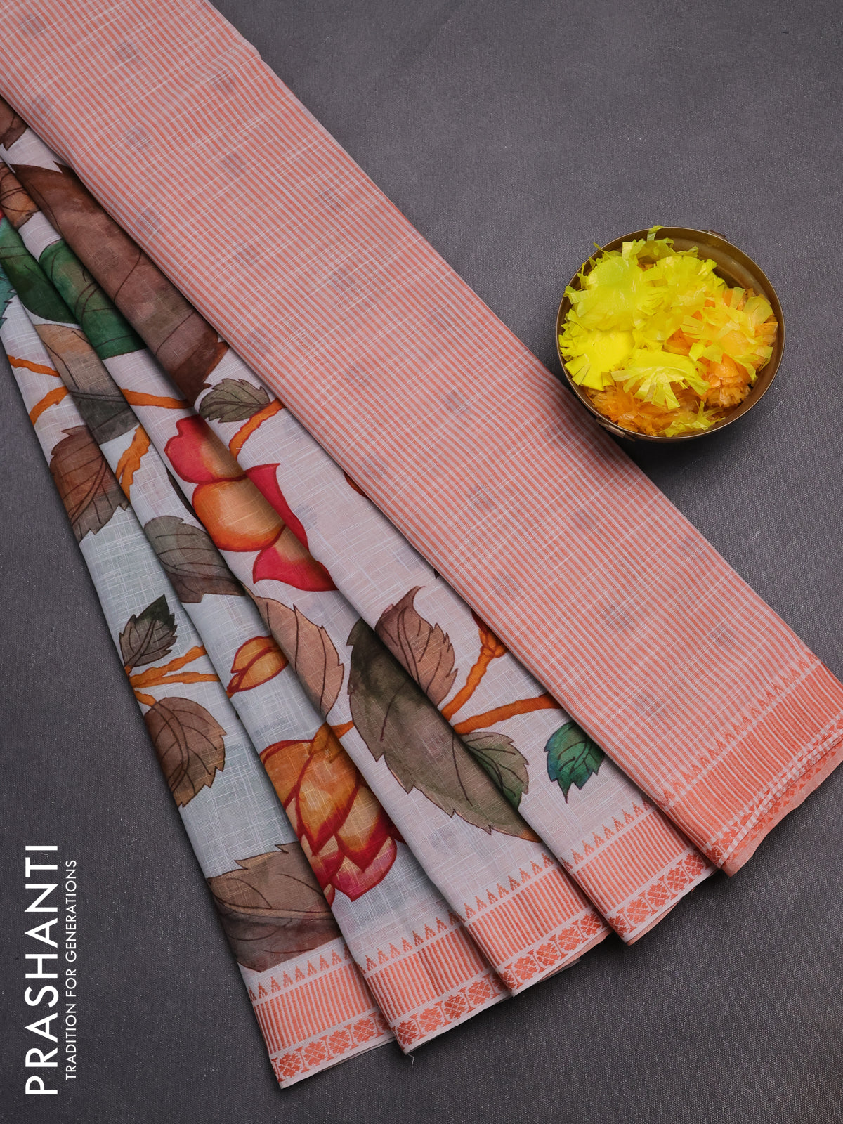 Mangalgiri cotton saree pastel grey and orange with allover floral prints and thread woven border
