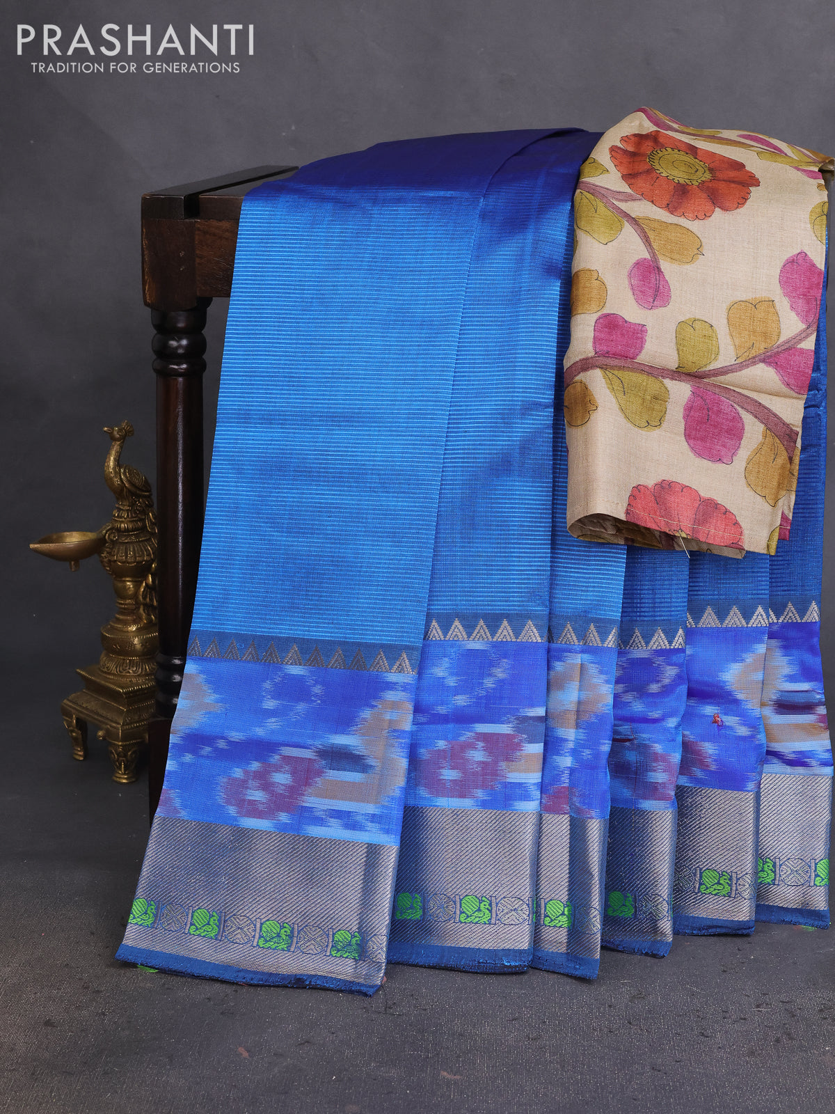 Mangalgiri silk cotton saree cs blue and grey shade with plain body and long ikat style silver zari woven border