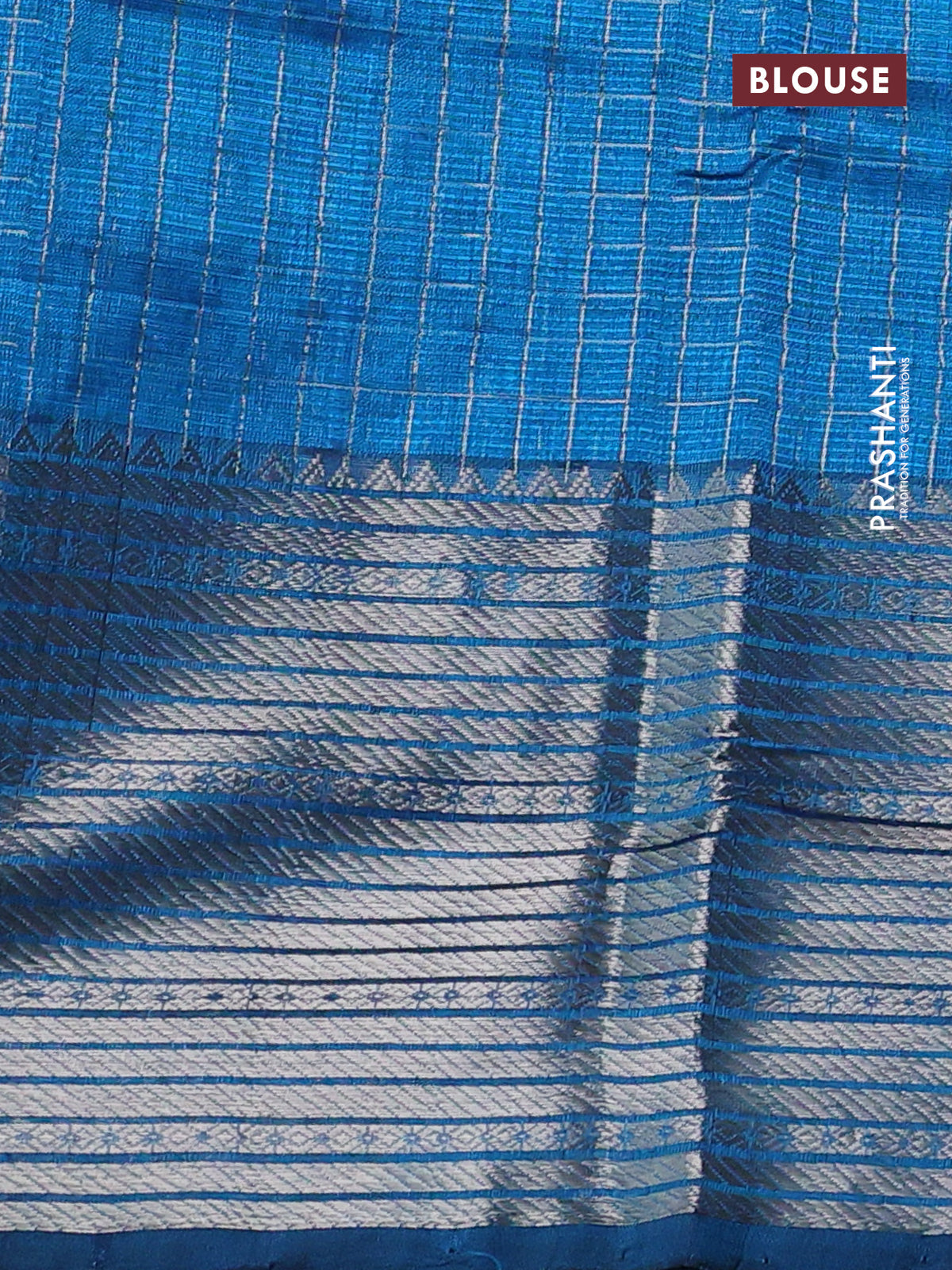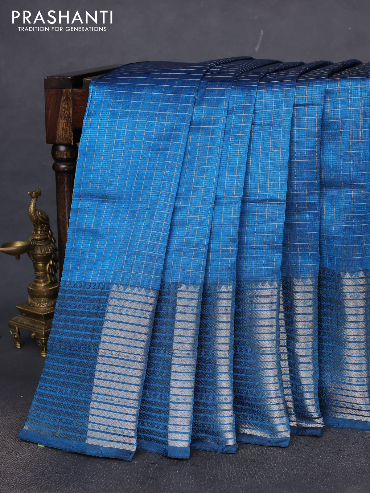 Mangalgiri silk cotton saree cs blue with allover zari woven checked pattern and long silver zari woven border