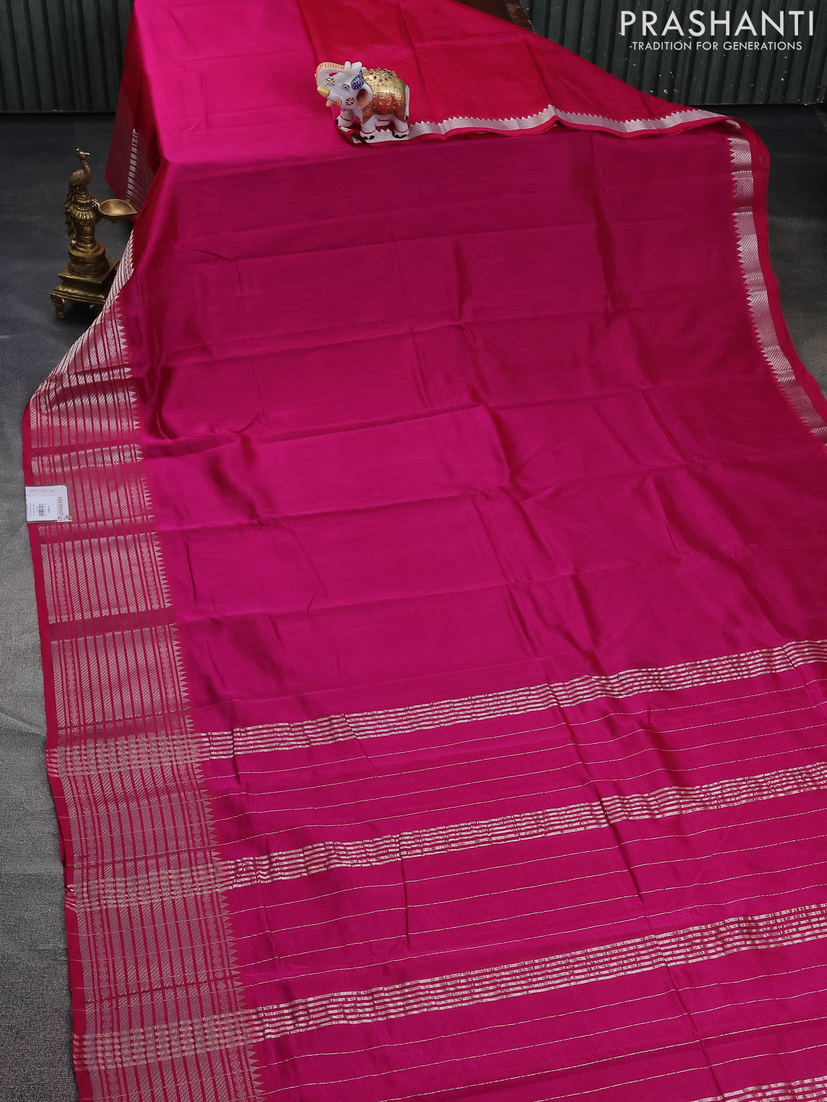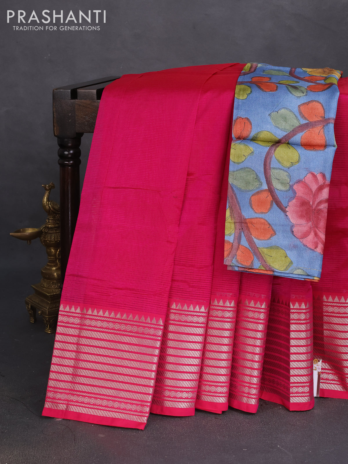 Mangalgiri silk cotton saree pink and blue shade with plain body and silver zari woven border