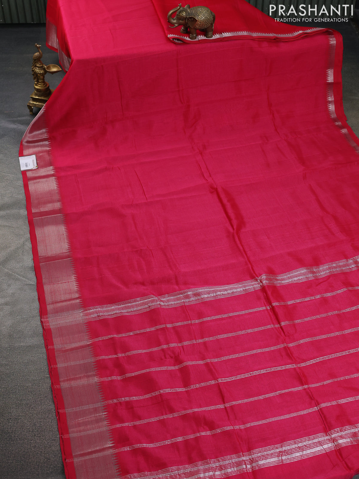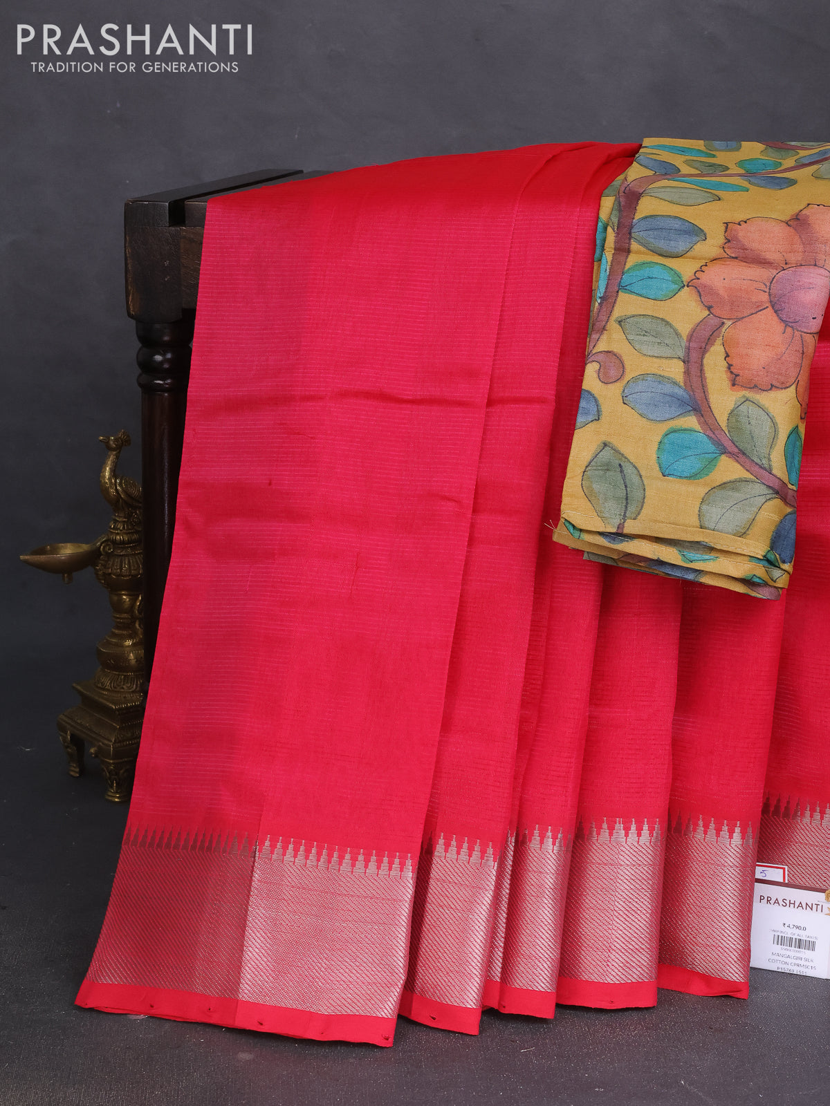 Mangalgiri silk cotton saree pink and mustard yellow with plain body and silver zari woven border
