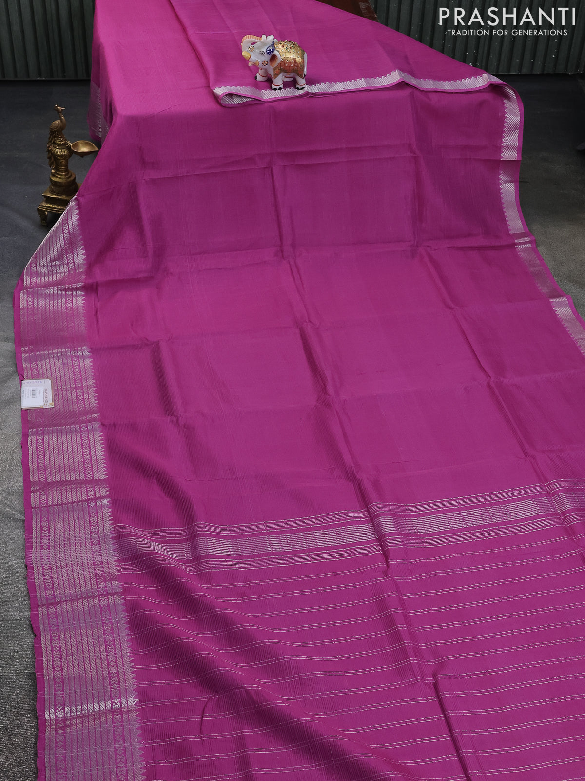 Mangalgiri silk cotton saree purple shade with plain body and silver zari woven border