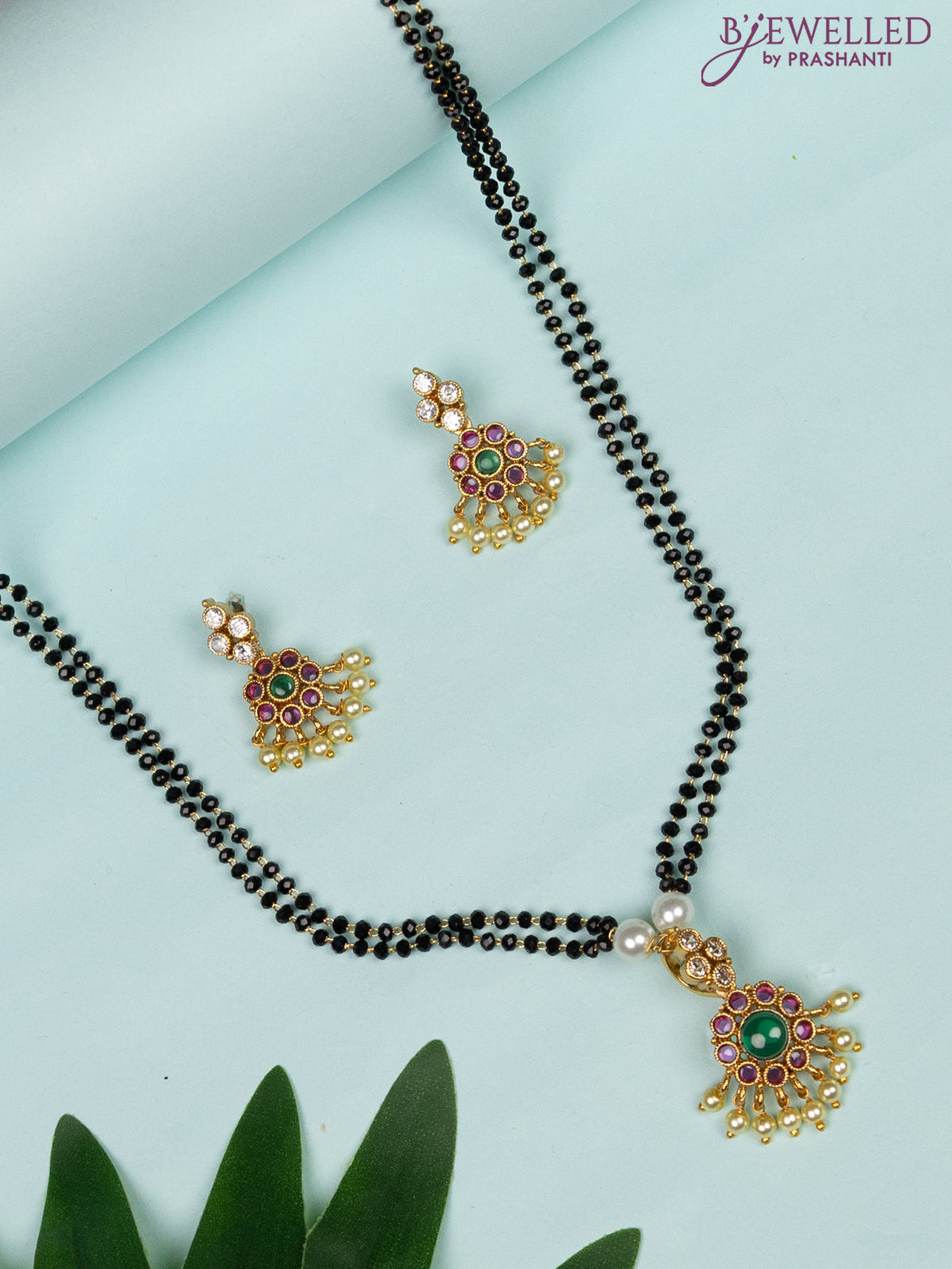 Mangalsutra double layer with kemp & cz stones and pearl hangings