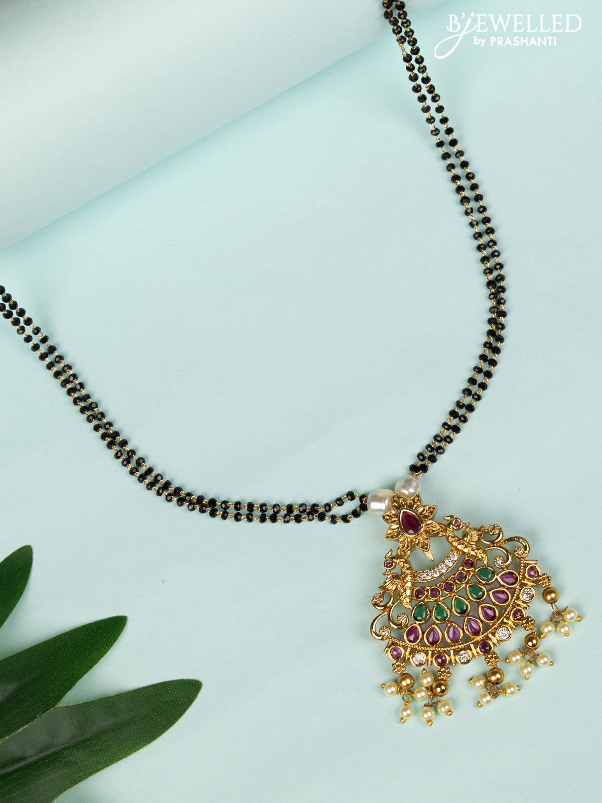 Mangalsutra double layer with kemp & cz stones and pearl hangings without earring