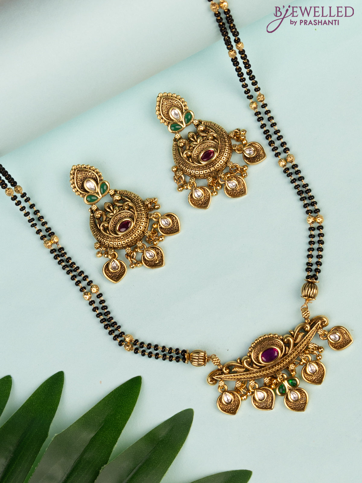 Mangalsutra double layer with kemp & kundan stones and hangings