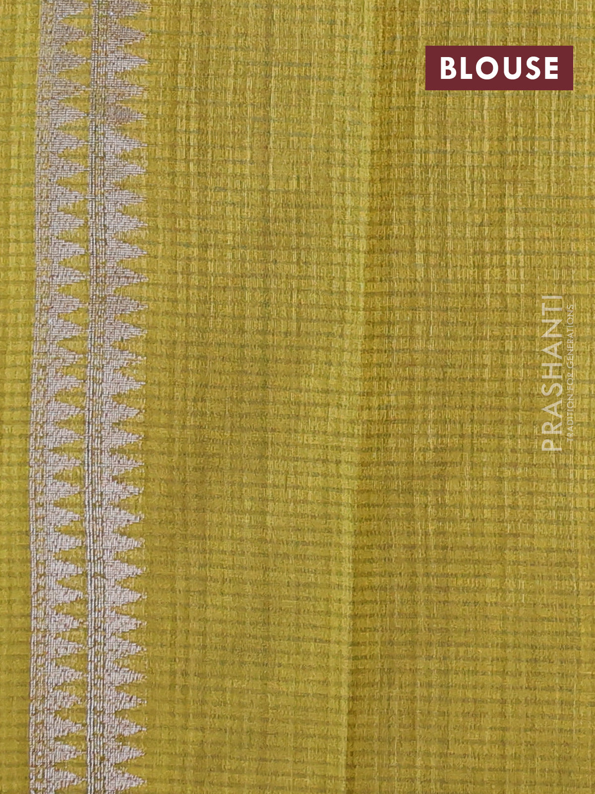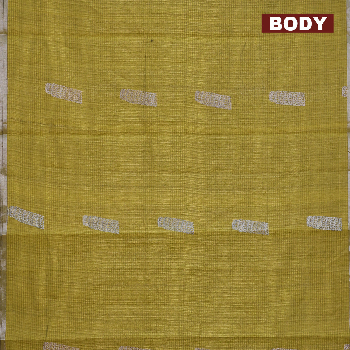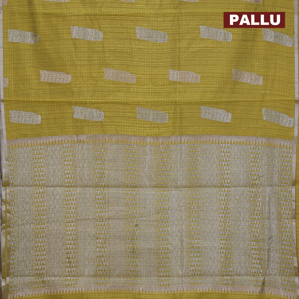 Matka tussar saree mehendi green with thread & silver zari woven buttas and piping border