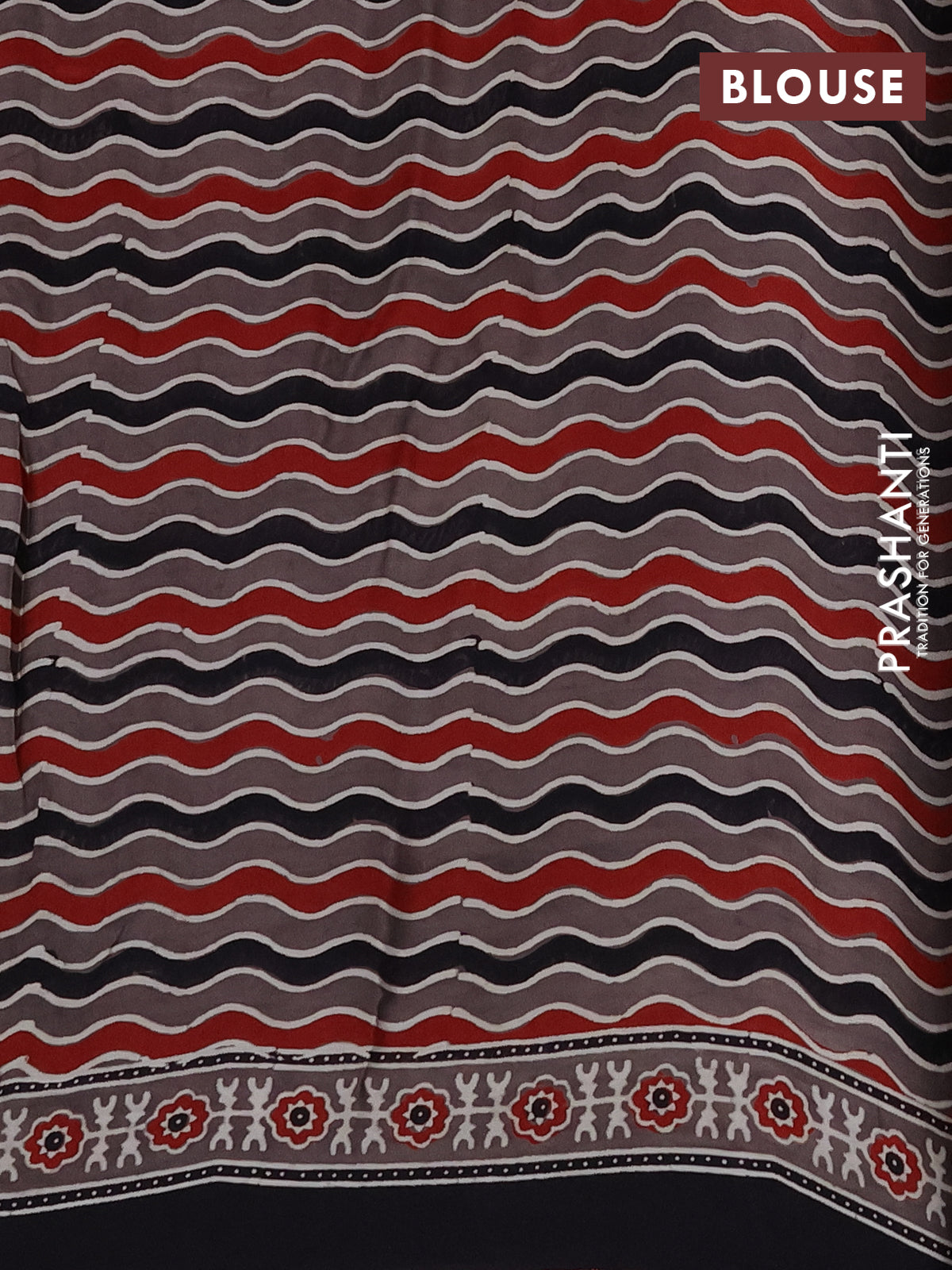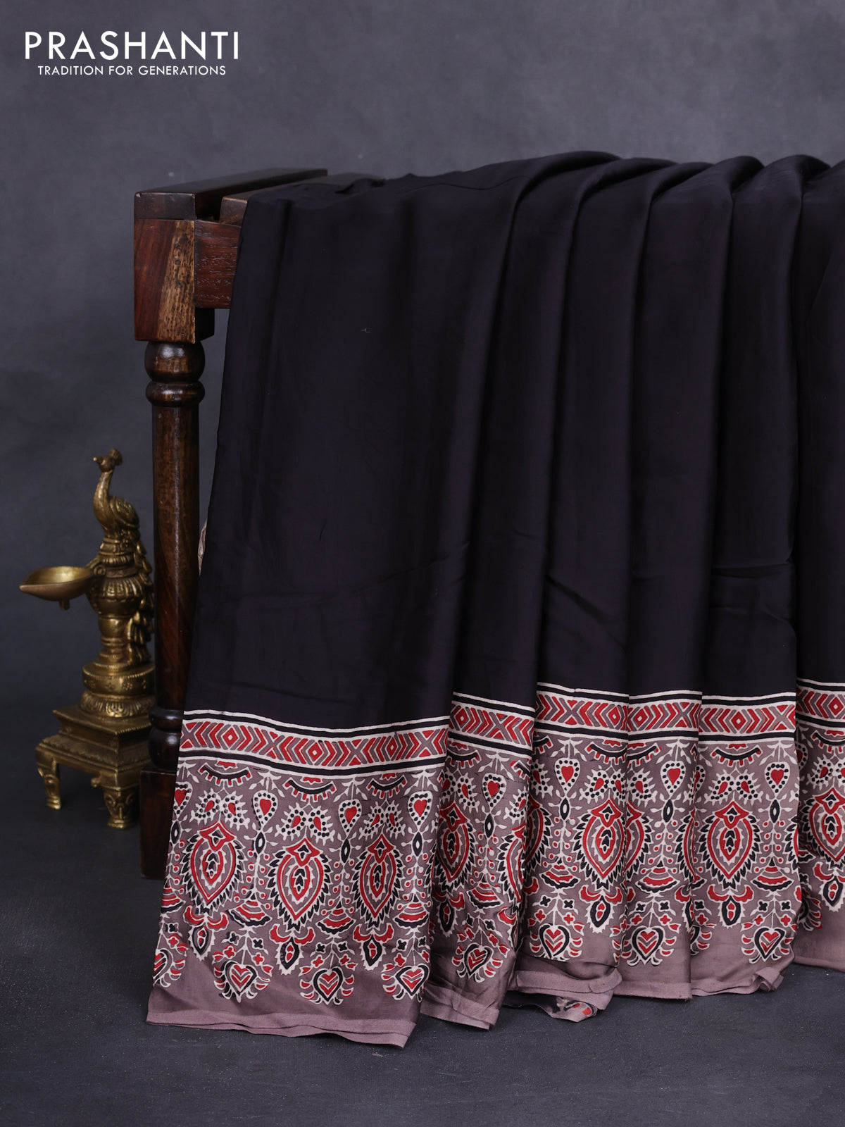 Modal silk saree black and grey with plain body and ajrakh printed border & pallu