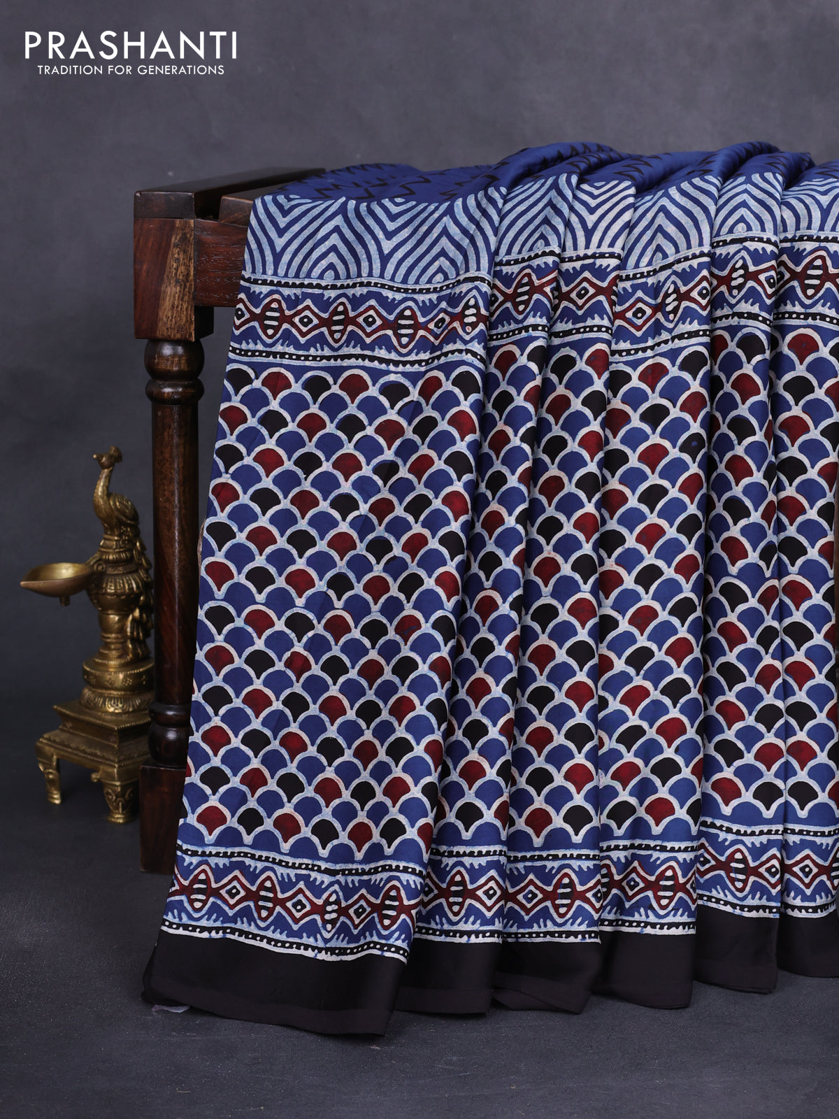 Modal silk saree blue and black with allover ajrakh prints and printed border