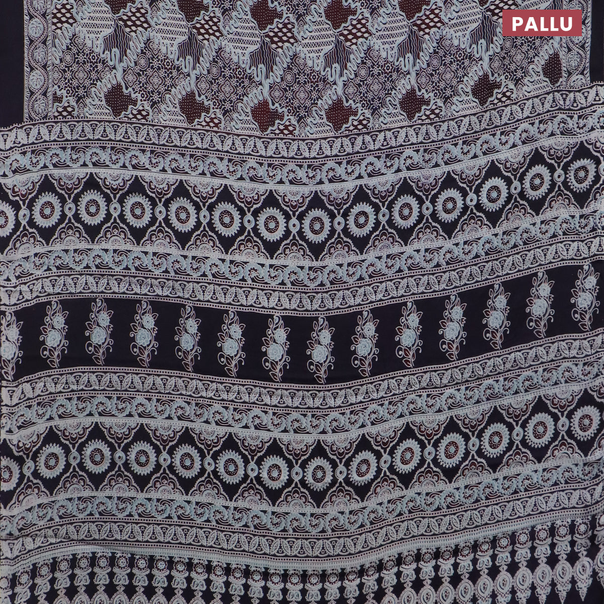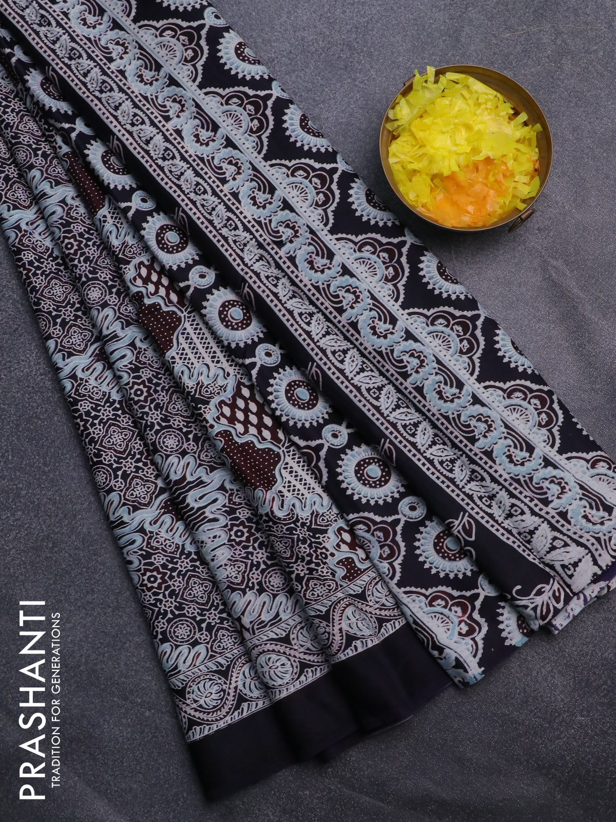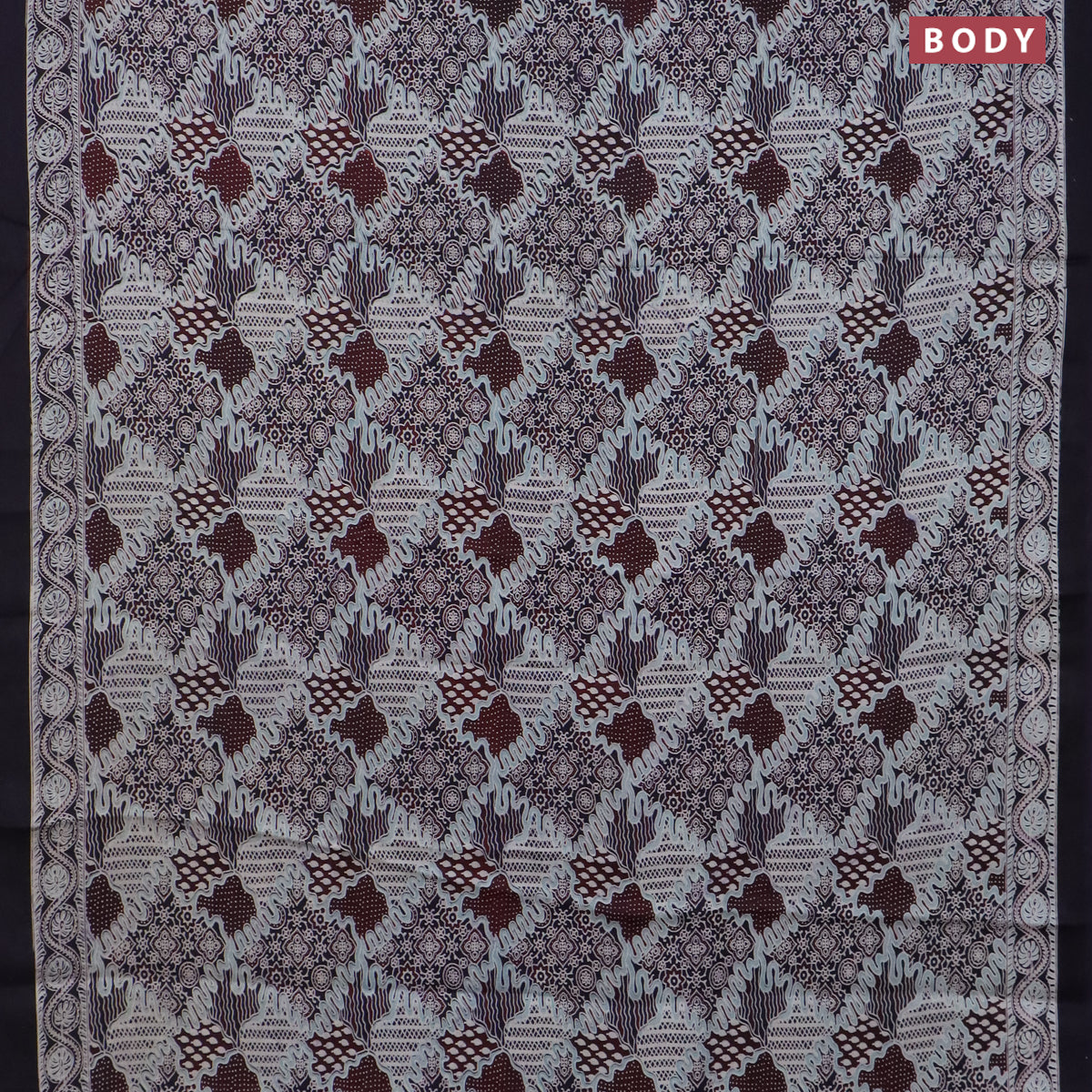 Modal silk saree deep jamun shade and multi colour with allover prints and printed border