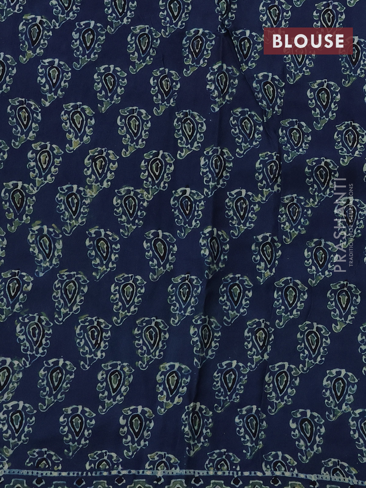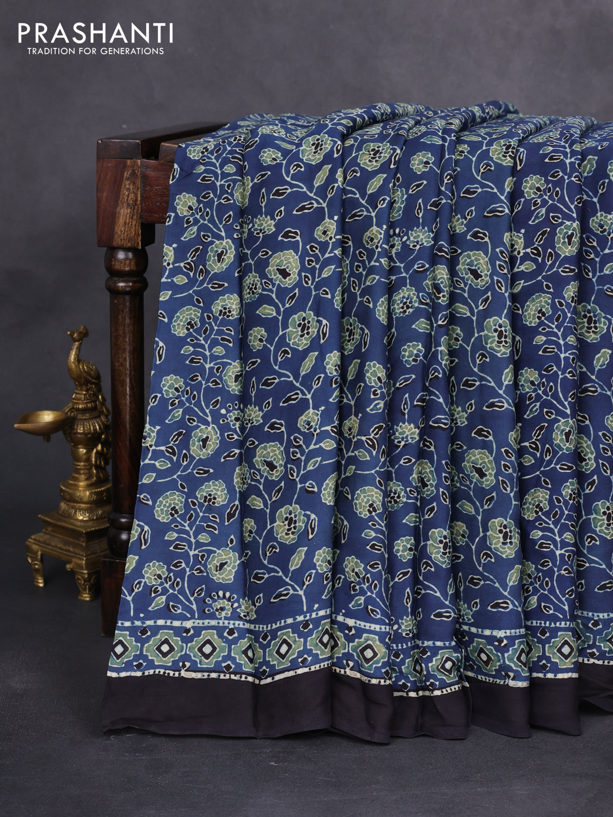 Modal silk saree indigo blue and black with allover ajrakh prints and printed border