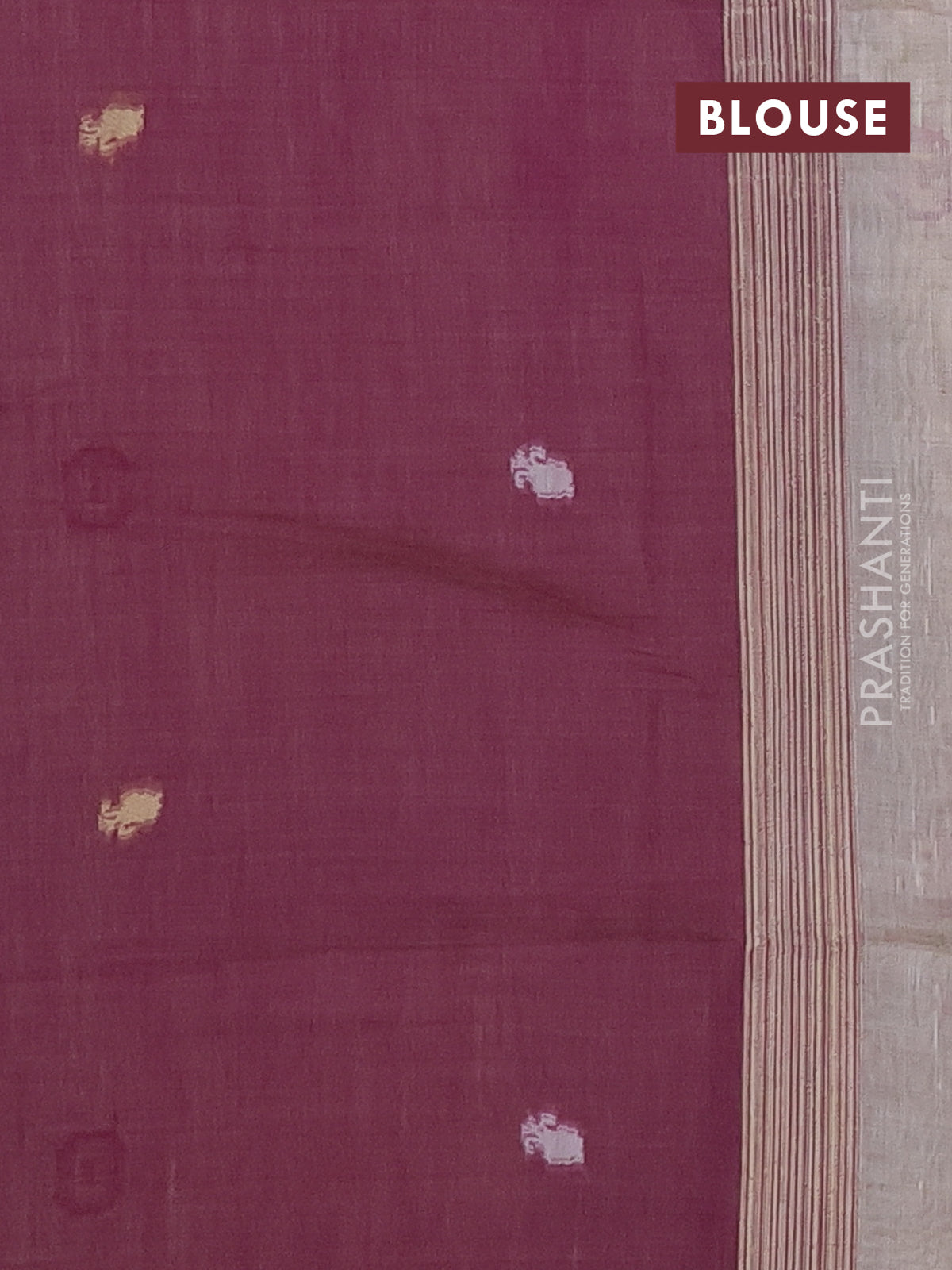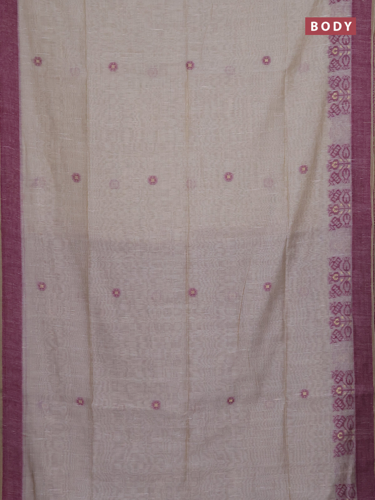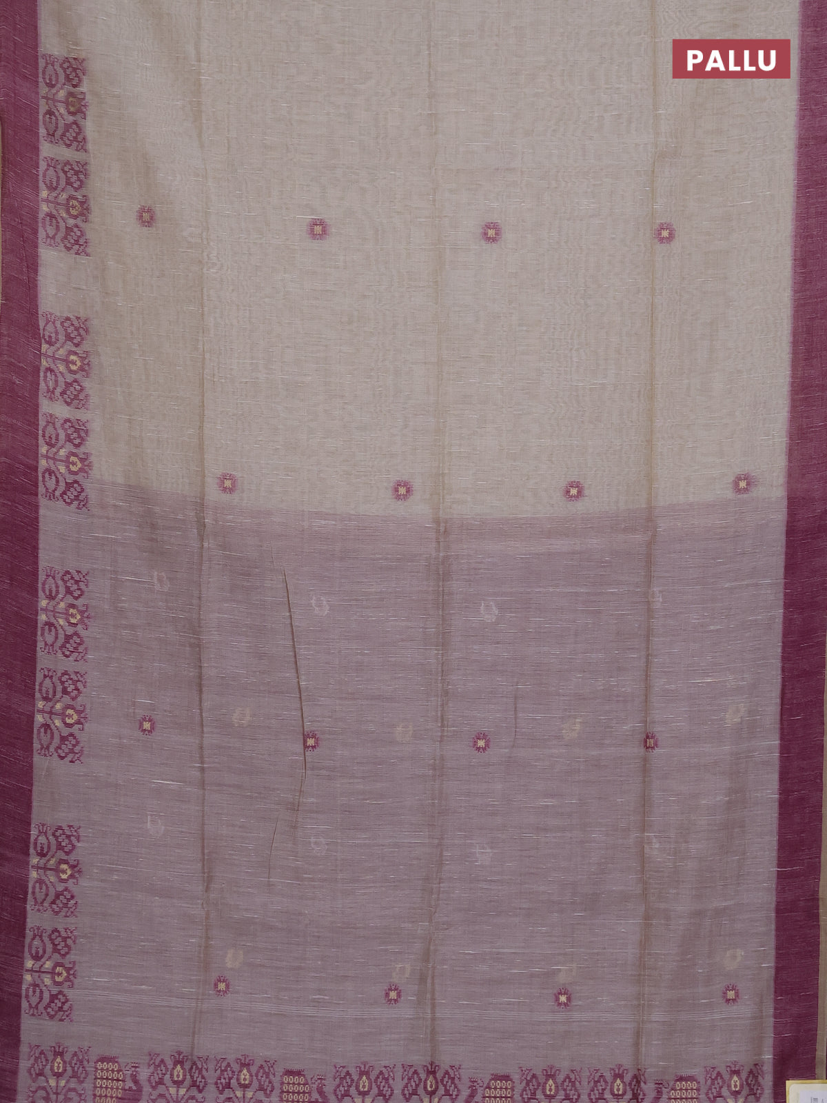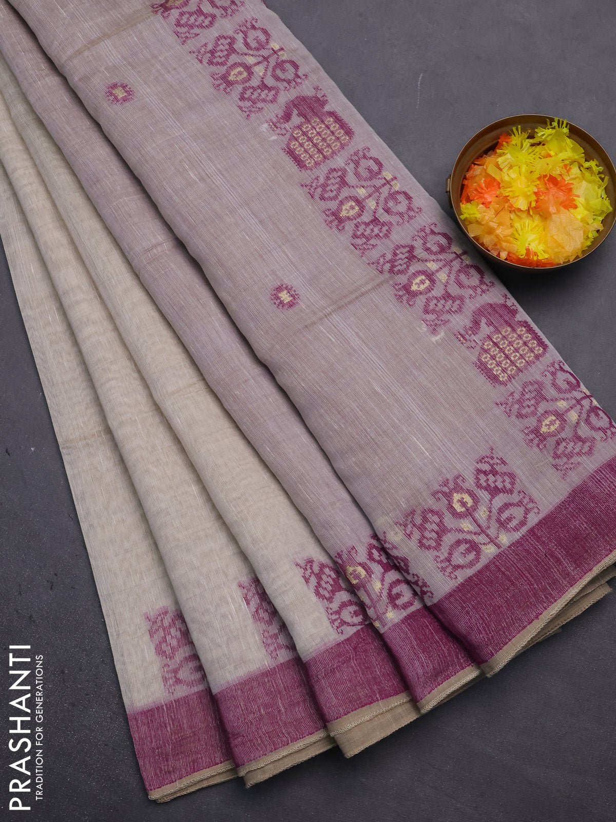 Munga cotton saree beige and purple with thread woven buttas and woven border