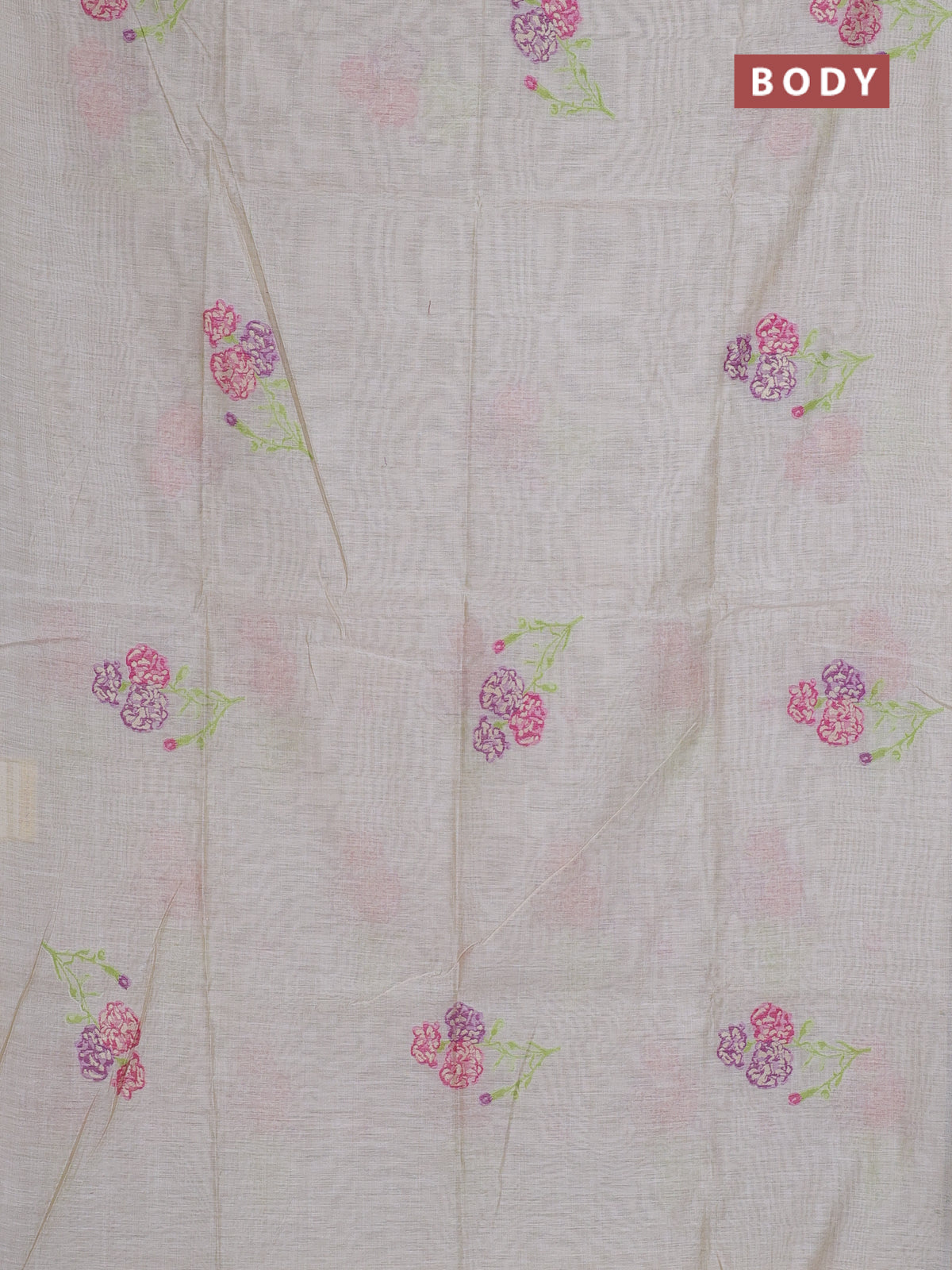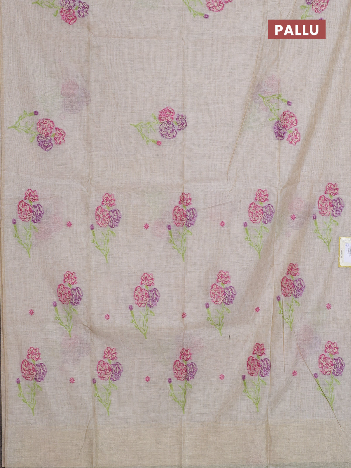 Munga cotton saree beige with thread woven floral buttas in borderless style