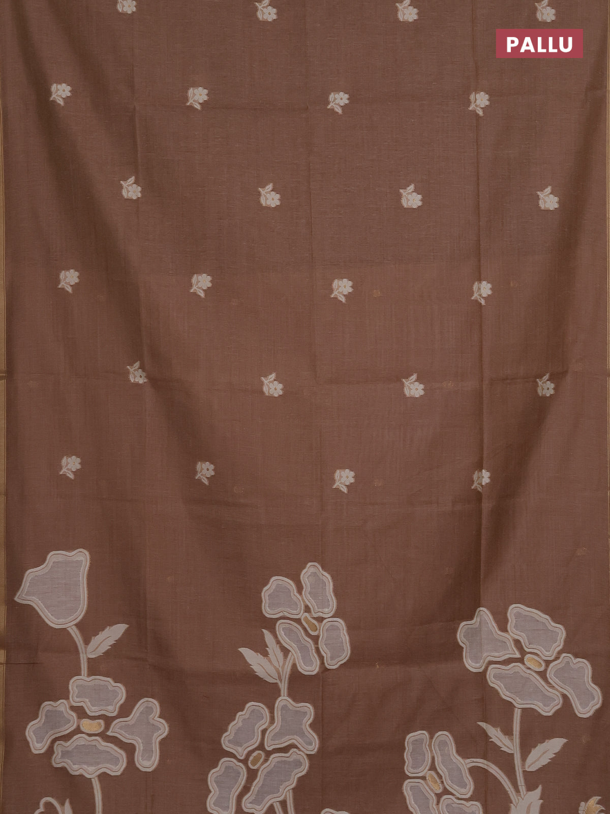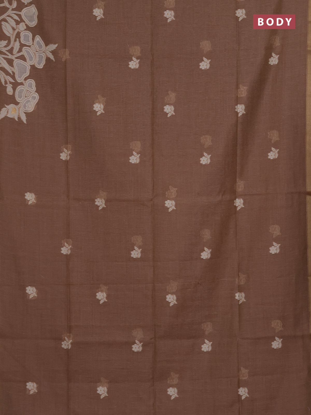 Munga cotton saree brown with thread woven floral buttas and zari woven border