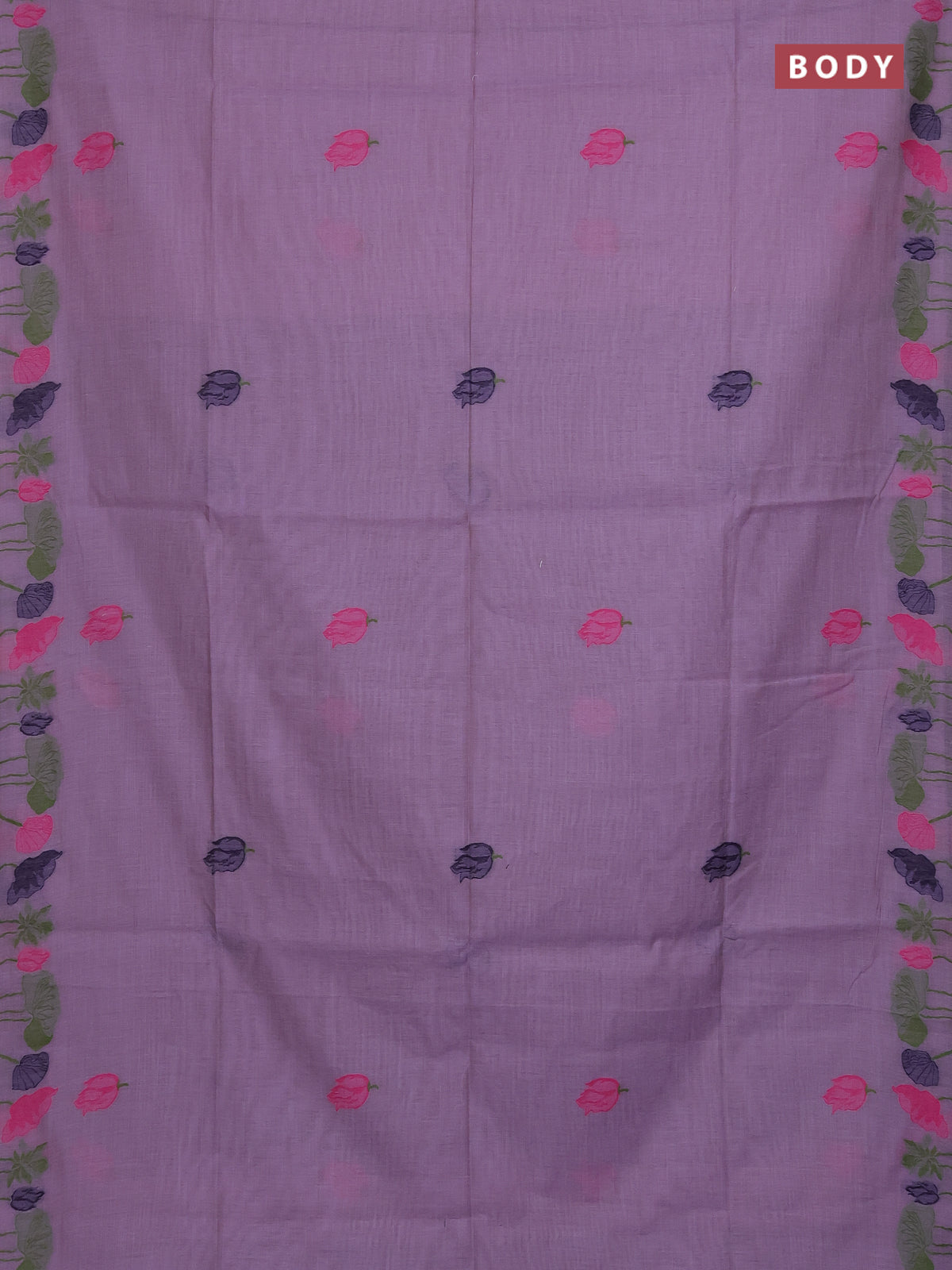 Munga cotton saree lavender with thread woven floral buttas in borderless style