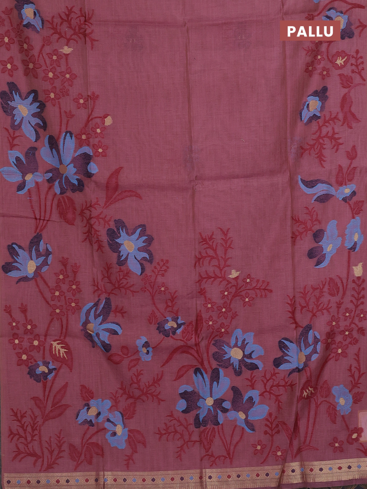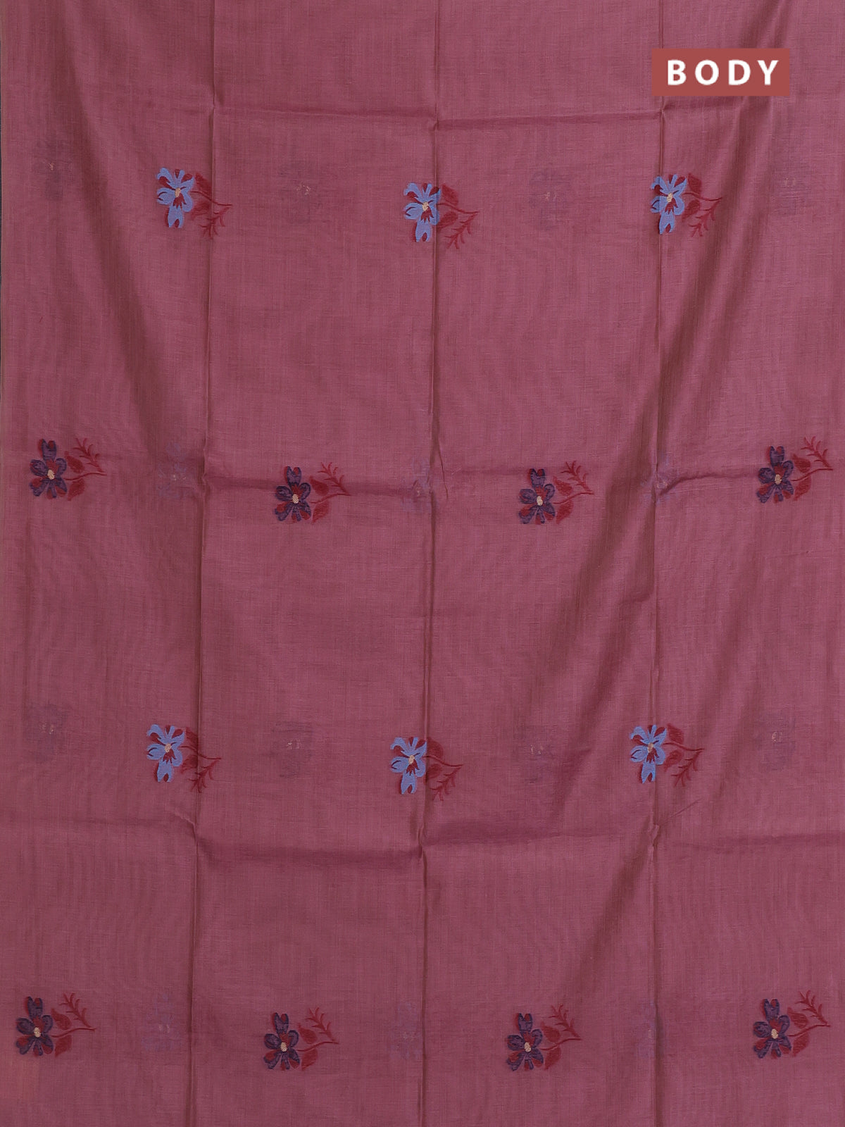 Munga cotton saree mauve pink and navy blue with allover thread weaves in borderless style