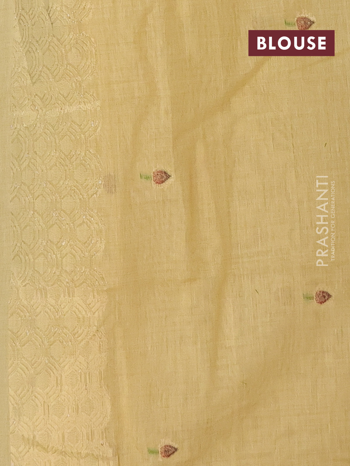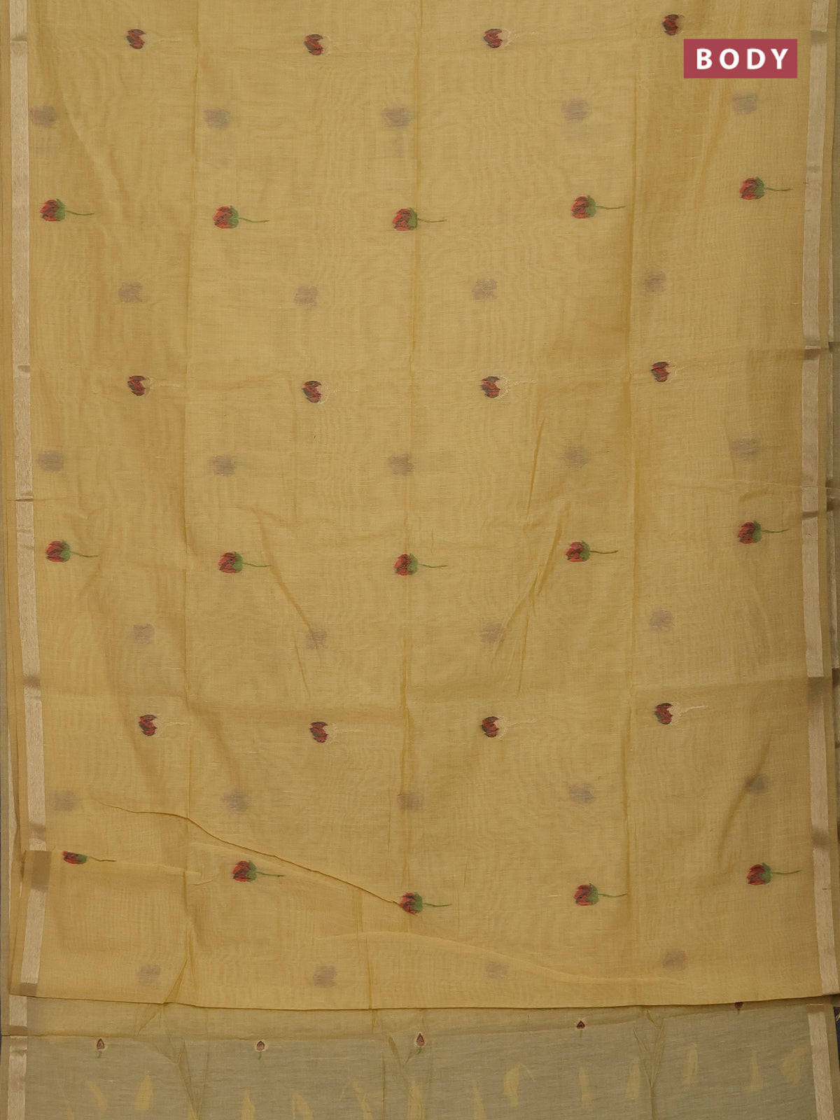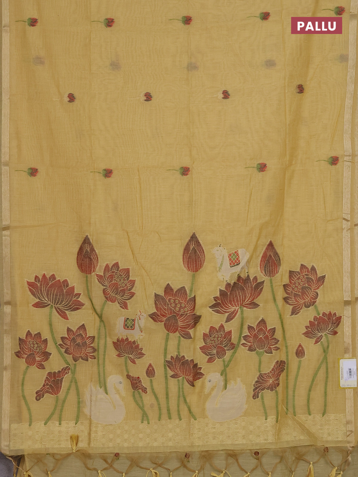 Munga cotton saree pale yellow with thread woven floral buttas and pichwai design weaving pallu