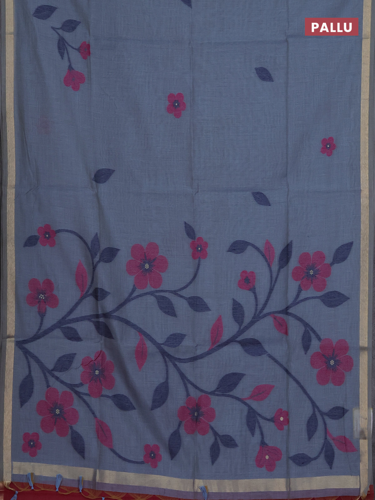 Munga cotton saree pastel blue and pink with thread woven floral buttas and thread woven border